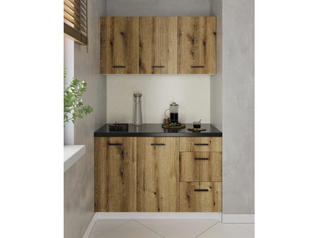 Malá kuchyňská linka v přírodním barevném provedení a jednoduchém designu. Tato elegantní kuchyně je cenově výhodná a díky svému nadčasovému designu bude moderní io několik let.