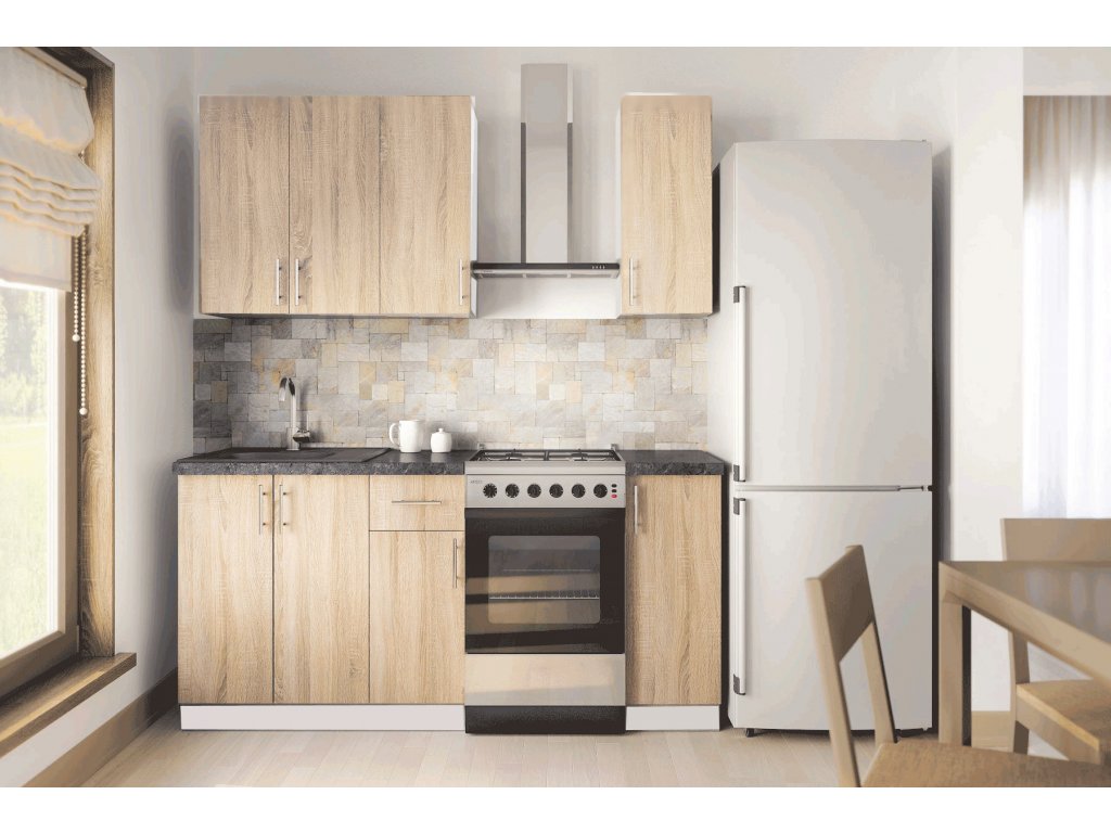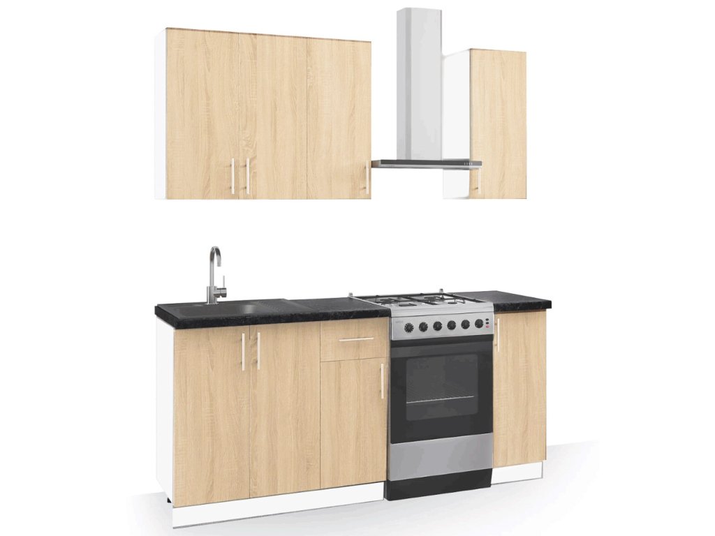 Tato moderní kuchyně kombinuje praktičnost a jednoduchý design. Skříňky se dají poskládat v libovolném pořadí a to Vám umožní si sestavit kuchyni podle svých představ. Korpus a sokl jsou z kvalitní LTD desky v barvě bílé, dvířka jsou v barvě dub sonoma. Úchyty jsou stříbrné plastové. Sestava se skládá ze spodních skříněk - výška 82 cm, hloubka 47 cm, (s pracovní deskou výška 85 cm, hloubka 60 cm), šířka: - 60 cm skříňka pod dřez 2-dveřová - 2x 30 cm skříňka 1-dveřová - a vrchních skříněk - výška 72 cm, hloubka 32 cm, šířka: - 60 cm skříňka 2-dveřová - 2x 30 cm skříňka 1-dveřová Kuchyně se prodává jako sestava, dokoupení skříněk není možné. Pracovní deska, spotřebiče, dřez a digestoř nejsou součástí kuchyně. Dřez a pracovní desky k zakoupení najdete v naší další nabídce. Dodáváme v demontovaném stavu.Doplňkové parametry
