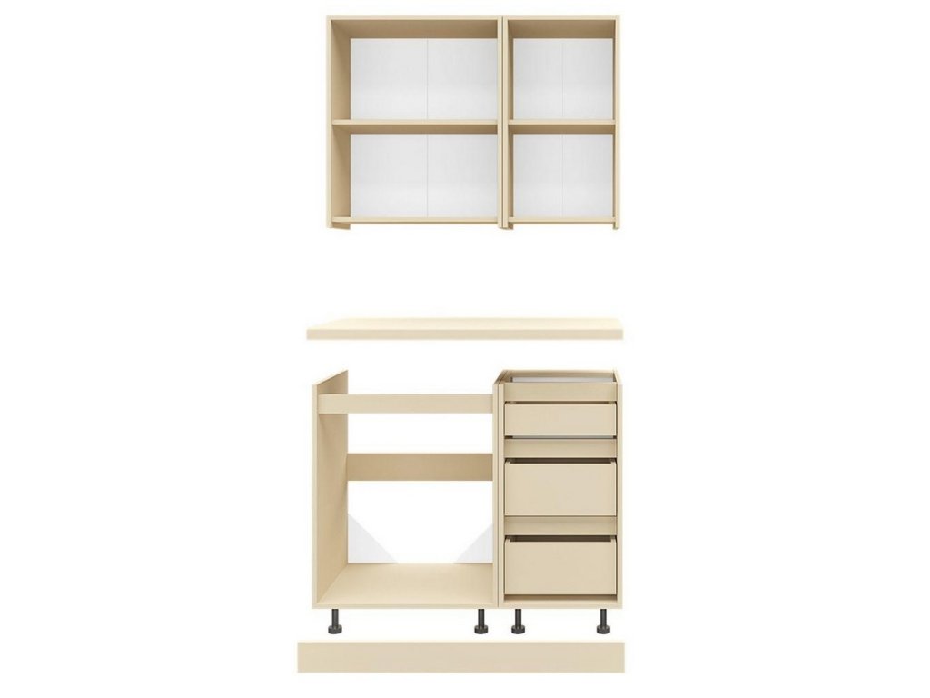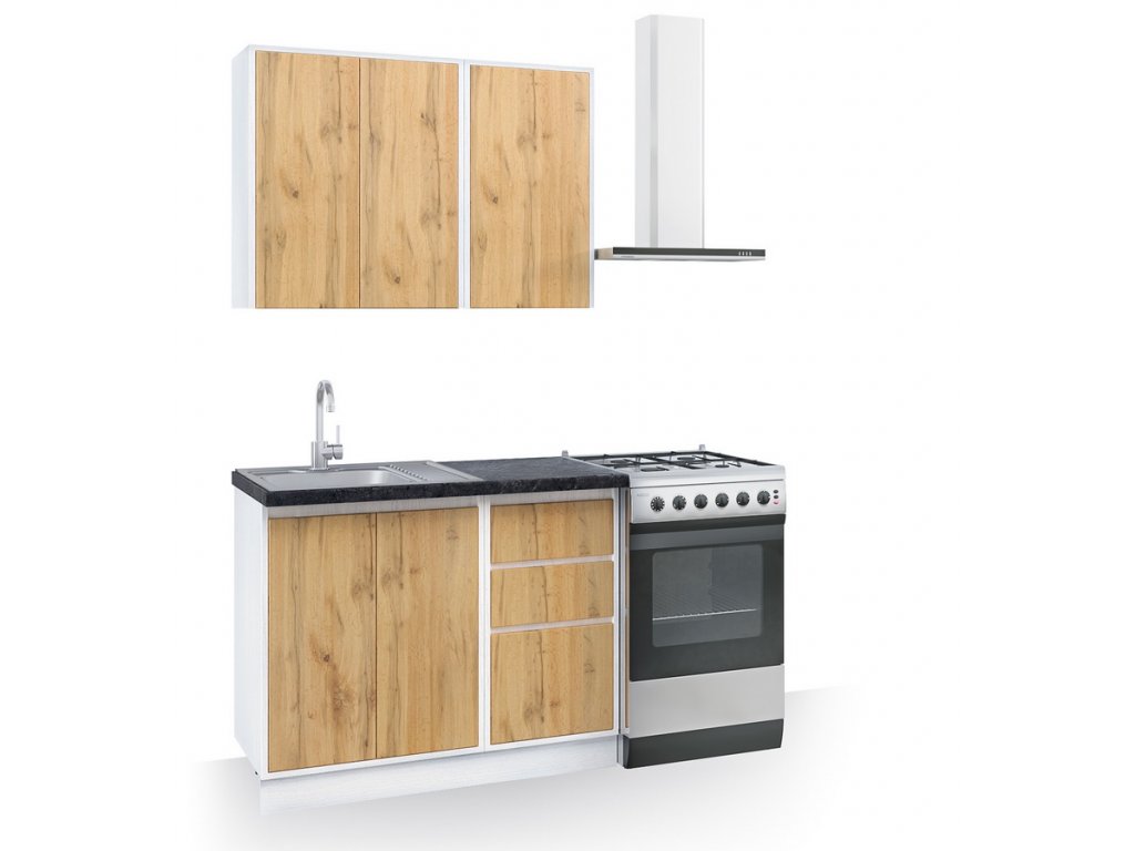 Tato moderní kuchyně kombinuje praktičnost a jednoduchý design. Skříňky se dají poskládat v libovolném pořadí a to Vám umožní si sestavit kuchyni podle svých představ. Korpus a sokl jsou z kvalitní LTD desky v barvě bílé, dvířka jsou v barvě apalačský dub. Dvířka mají bezúchytový systém otvírání. Sestava se skládá ze spodních skříněk - výška 82 cm, hloubka 47 cm, (s pracovní deskou výška 85 cm, hloubka 60 cm), šířka: - 60 cm skříňka pod dřez 1-dveřová - 40 cm skříňka se 3 zásuvkami - a vrchních skříněk - výška 72 cm, hloubka 32 cm, šířka: - 60 cm skříňka 2-dveřová - 40 cm skříňka 1-dveřová Kuchyně se prodává jako sestava, dokoupení skříněk není možné. Pracovní deska, spotřebiče, dřez a digestoř nejsou součástí kuchyně. Dřez a pracovní desky k zakoupení najdete v naší další nabídce. Dodáváme v demontovaném stavu.Doplňkové parametry