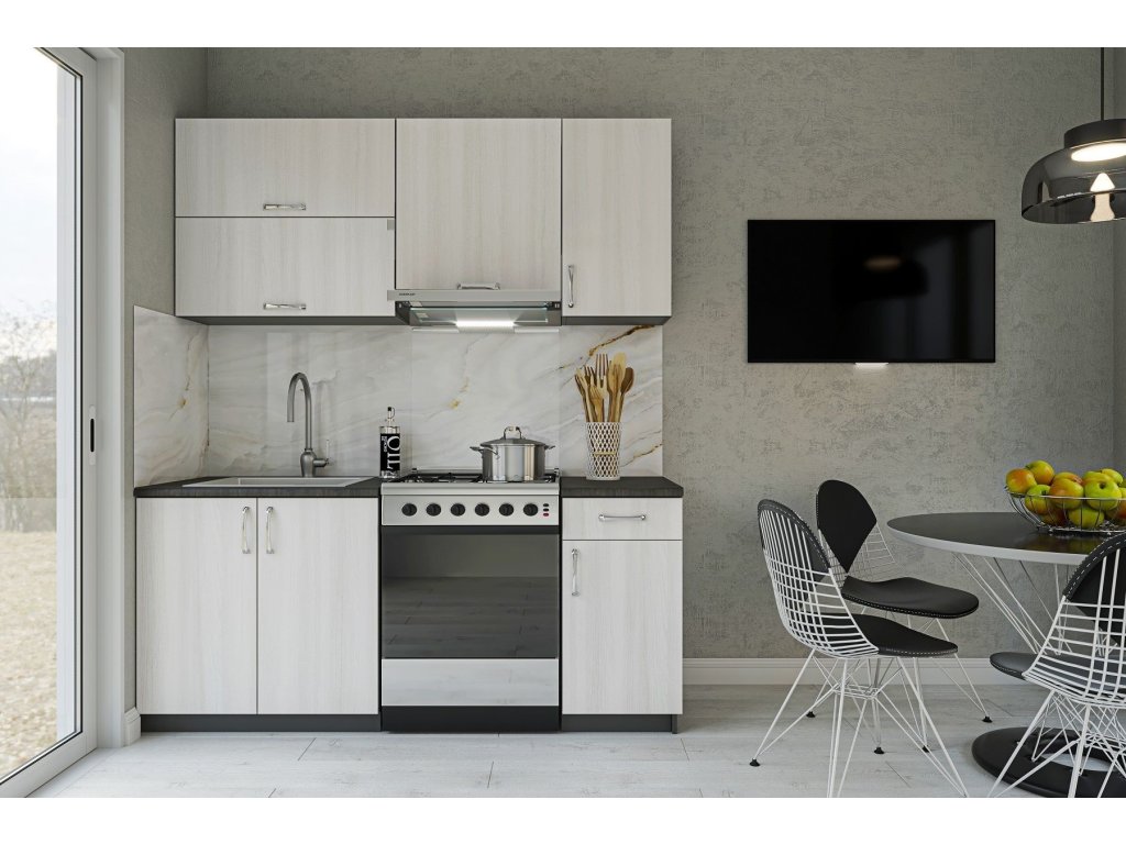 Dřez, pracovní deska, sokl nejsou v ceně. Spotřebiče nejsou součástí kuchyňské linky. Dodáváme v demontovaném stavu.