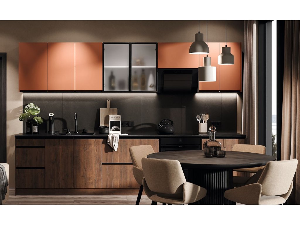 Stylová kuchyňská linka v netradičním barevném provedení rozzáří Vaši kuchyni. je moderní kuchyňská linka, která je kombinována s dřevěným dekorem v odstínu dub Silverjack vintage. Trendový design a zajímavá barevná kombinace zaručí, že tato kuchyňská linka bude středem Vaší domácnosti.