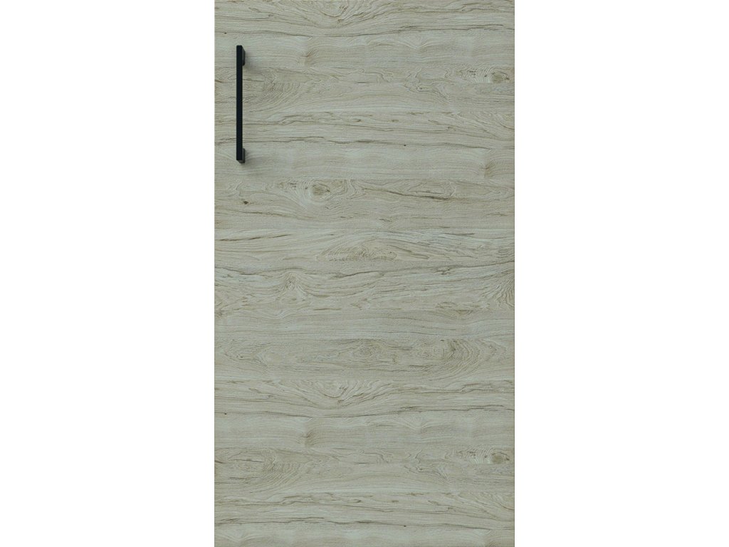 Materiál LTD, korpus je v bílé barvě, dvířka jsou v barvě satén, bílý ořech. Úchyty jsou v barvě černé.