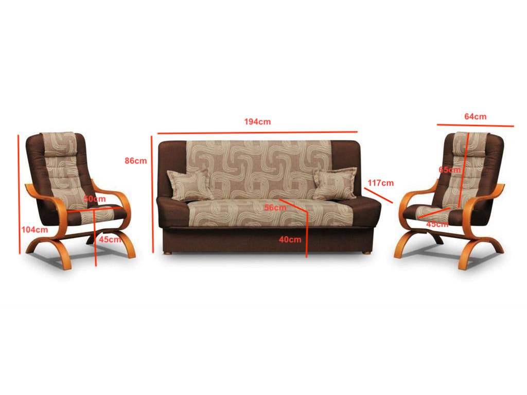 Elegantní sedací souprava Jola je vyrobena v klasickém provedení 3F+1+1. Křesla mají lehkou konstrukci z ohýbaného dřeva, díky tomu nezaberou moc místa a lehce se s nimi manipuluje. Třísed je rozkládací. Jednoduchým rozložením pomocí systému "klik klak" získáte lůžko k občasnému přespání Vaší návštěvy. Součástí je i úložný prostor na lůžkoviny. Křesla jsou dodávána v demontu. Vyobrazené dopňky a dekorace nejsou v ceně.
