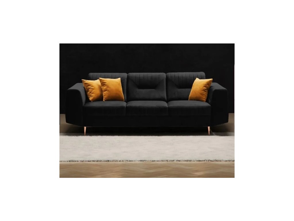 Elegantní a stylová sedací souprava Venezia se hodí do každého interiéru. Její předností je pohodlné sedadlo s vysokoelastickou výplní HR pěny, která nabízí vysokou úroveň pohodlí a pohodlné zádové polštáře. Pohovky stojí na kovových nohách v barvě mědi, zlaté nebo černé ( pište do poznámky). Sestava je celočalouněná v látce Bluvel.