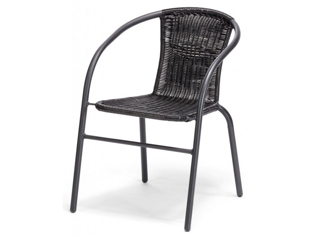 Balkonová židle. Díky volbě materiálu je lehce omyvatelná a její údržba není nijak náročná. Křeslo je z ocelové konstrukce, sedák je z plastu. Výška sedu křesla je 42 cm, hloubka sedu je 39 cm. Barevné provedení - černá.Doplňkové parametry