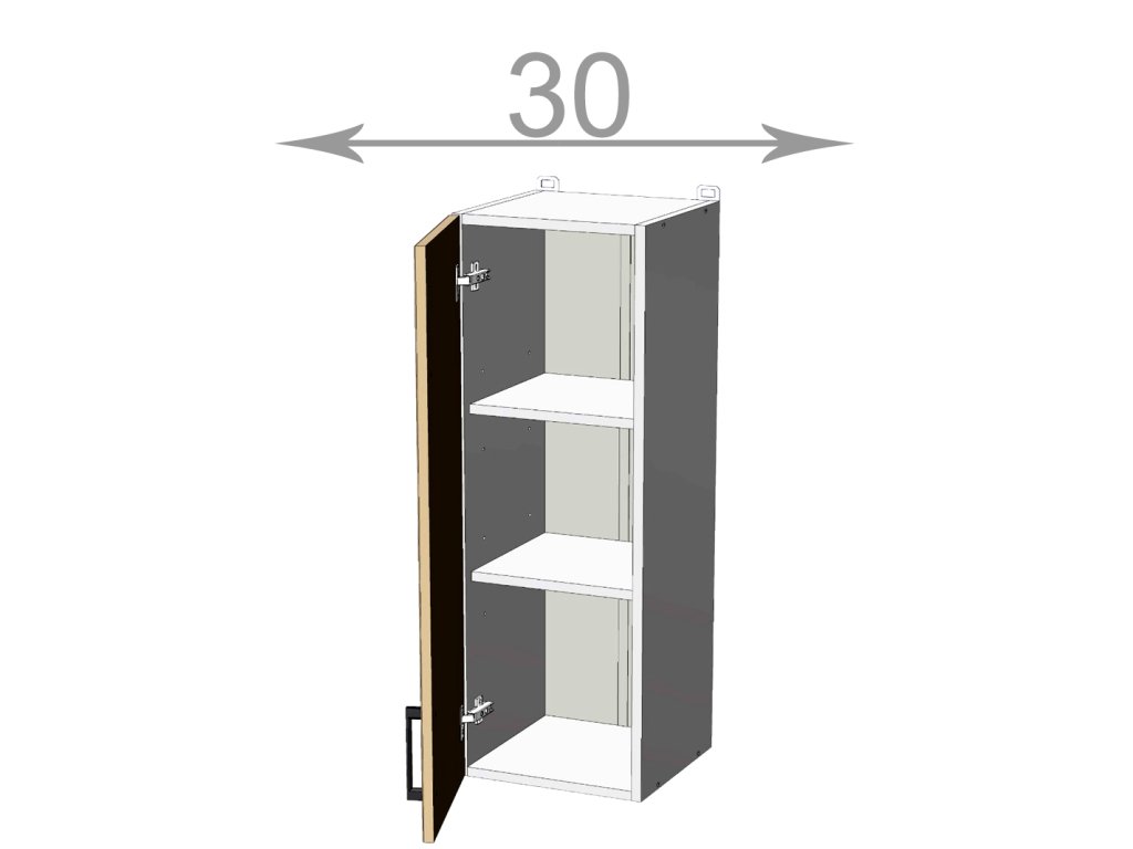 Kuchyňský sektor Capri, horní vysoká skříňka, šířka 30 cm, 1 dvířko, korpus grafit, dvířka nymphaea alba. Skříňka s výškou 92 cm do vyšší zástavby horních skříněk. Představujeme vám kuchyňský sektor Capri - nejlevnější kuchyni s možností poskládat si vlastní kuchyňskou sestavu ze skříněk dle svých potřeb a prostoru. Kupujte chytře a výhodně! Kuchyňská linka na míru vás nemusí stát majlant. U kuchyně Craft máte na výběr víc jak 10 barev kuchyňských dvířek jak v dřevodekoru, tak v unikolorech. Zvolit si lze i barvu korpusu, takže výsledná kuchyňská linka na míru se bude krásně hodit do vaší kuchyně jak rozměrem tak barvou. Závěsy horních skříněk (v ceně) jsou bez možnosti regulace. V nabídce též regulovatelné závěsy. Výhodou je, že úchyty skříněk jsou součástí dvířek a tudíž jsou v ceně.Doplňkové parametry