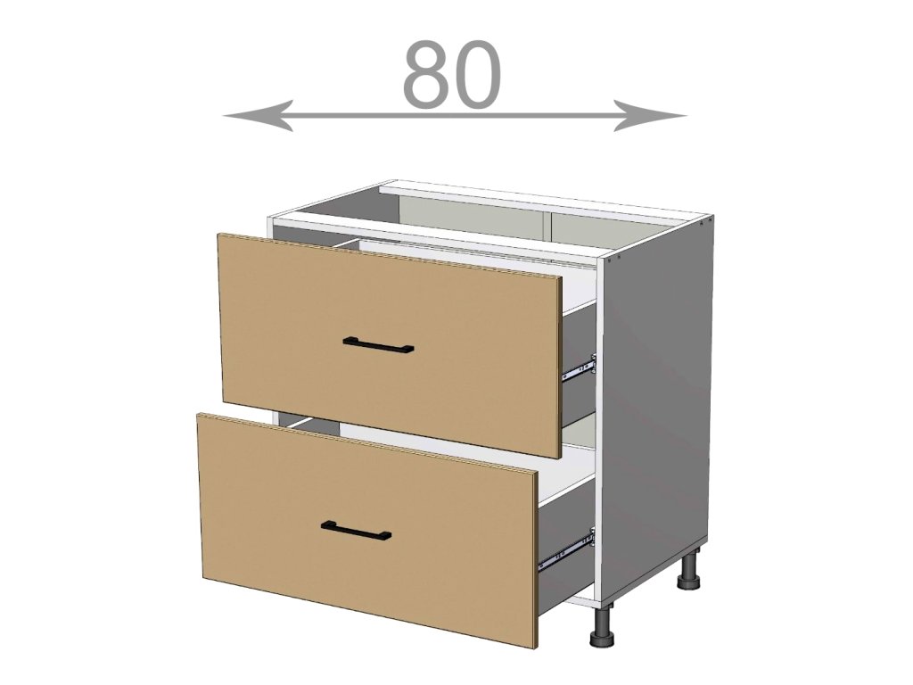 Dolní skříňka se zásuvkami, šířka 80 cm, 2 zásuvky, MDF antracit lesk, bílá korpus. potažené HPL vysokotlakým laminátem a mají plastovou hranu ve shodné barvě, což zaručuje vysokou odolnost a výdrž. výběr a objednávají se zvlášť. Nožky dolních skříněk mají výšku skříňky. Nabízíme i nožky 15 cm.Doplňkové parametry