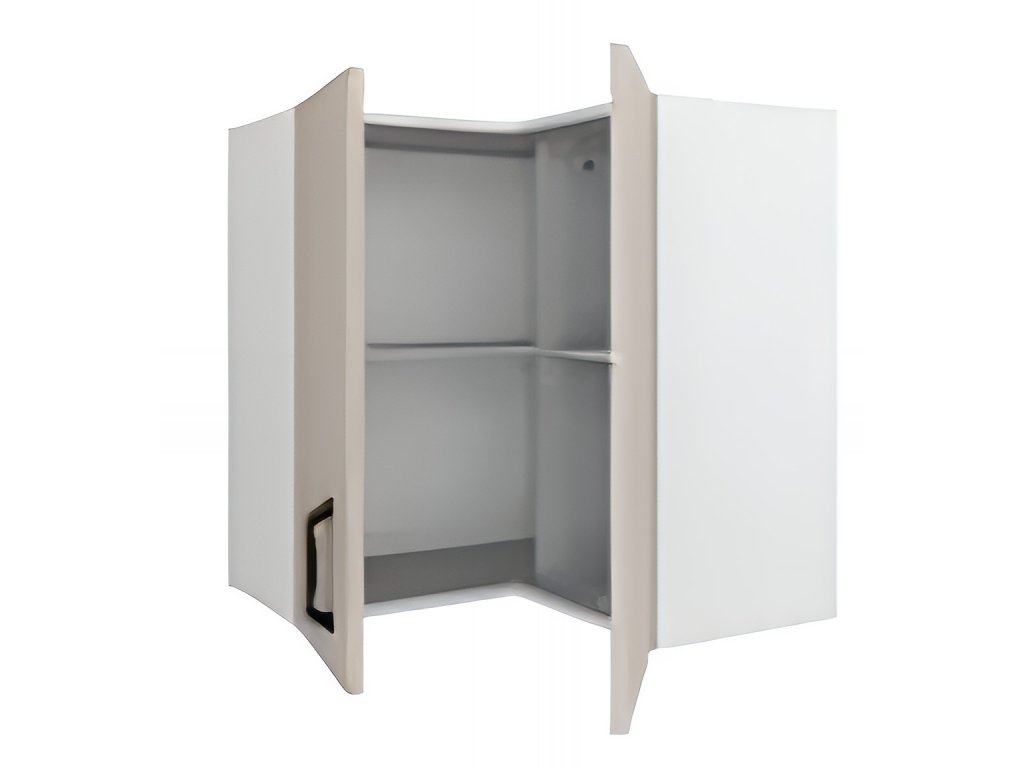 Horní rohová skříňka, šířka 60 cm, 2 dvířka,šedý jíl, grafit korpus. Náleží do kuchyňské sektorové řady Horizon. Otevírání dvířek je klasické do stran. Určena je do vyšší zástavby horních skříněk 92 cm. Cenově atraktivní kuchyňský sektor Horizon ve vintage stylu je vyroben z odolného LTD. Úchytka je na výběr, ostatní kování je v ceně. Z jednotlivých skříněk je možno poskládat si sestavu na míru své kuchyně. Horní skříňky mají v ceně očka pro zavěšení na zeď. Regulovatelné závěsy lze dokoupit z naší nabídky. Úchytky ke skříňce se objednávají zvlášť. Na výběr je více než 10 typů úchytek, takže lze vybrat dle vašeho vkusu. Dvířka jsou již předvrtána na rozteč 128 mm.Doplňkové parametry