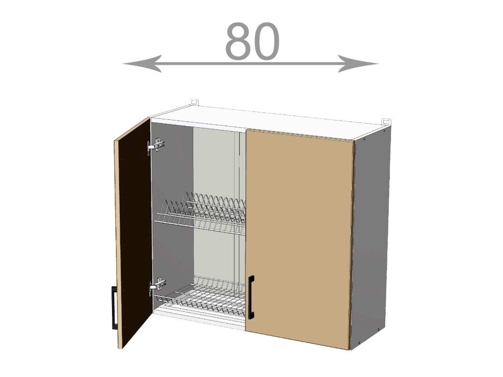 Horní skříňka s odkapávačem, šířka 80 cm, 2 dvířka beton, grafit korpus. Náleží do kuchyňské sektorové řady Horizon. Uvnitř skříňky je vestavěný odkapávač na nádobí. Cenově atraktivní kuchyňský sektor Horizon ve vintage stylu je vyroben z odolného LTD. Úchytka je na výběr, ostatní kování je v ceně. Kuchyně Horizon je výjimečná horizontálním uložením kresby dřeva na dvířkách. Z jednotlivých skříněk je možno poskládat si sestavu na míru své kuchyně. Horní skříňky mají v ceně očka pro zavěšení na zeď. Regulovatelné závěsy lze dokoupit z naší nabídky. Úchytky ke skříňce se objednávají zvlášť. Na výběr je více než 10 typů úchytek, takže lze vybrat dle vašeho vkusu. Dvířka jsou již předvrtána na rozteč 128 mm.Doplňkové parametry