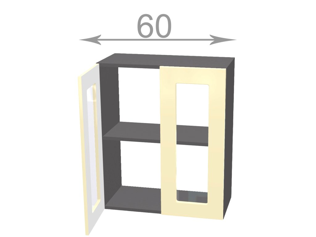 Horní vitrína, šířka 60 cm, 2 dvířka satén, bílý korpus. Náleží do kuchyňské sektorové řady Horizon.Cenově atraktivní kuchyňský sektor Horizon ve vintage stylu je vyroben z odolného LTD. Úchytka je na výběr, ostatní kování je v ceně. Z jednotlivých skříněk je možno poskládat si sestavu na míru své kuchyně. Horní skříňky mají v ceně očka pro zavěšení na zeď. Regulovatelné závěsy lze dokoupit z naší nabídky. Úchytky ke skříňce se objednávají zvlášť. Na výběr je více než 10 typů úchytek, takže lze vybrat dle vašeho vkusu. Dvířka jsou již předvrtána na rozteč 128 mm.Doplňkové parametry