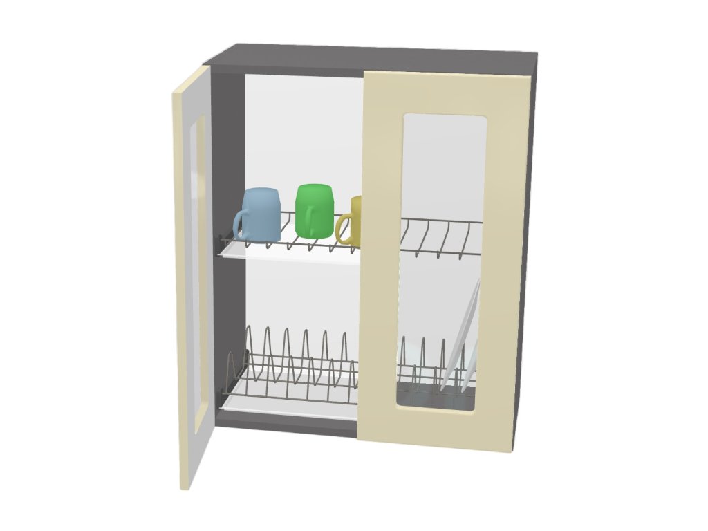 Horní vitrína s odkapávačem, šířka 70 cm, 2 dvířka bílý mat, bílý korpus. Náleží do kuchyňské sektorové řady Modena. Uvnitř skříňky je vestavěný odkapávač na nádobí. Cenově výhodná kuchyňská řada Modena má dvířka z kvalitního LTD. Úchytku je možno si vybrat, další kování je v ceně. Z sektoru Modena je možno poskládat si kuchyňskou linku na míru své místnosti. Horní skříňky mají v ceně očka pro zavěšení na zeď. Regulovatelné závěsy lze dokoupit z naší nabídky. Úchytky ke skříňce se objednávají zvlášť. Na výběr je více než 10 typů úchytek, takže lze vybrat dle vašeho vkusu. Dvířka jsou již předvrtána na rozteč 128 mm.Doplňkové parametry