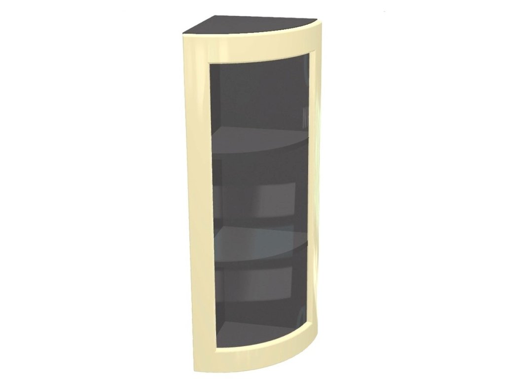 Horní vysoká rohová vitrína, šířka 32 cm, 1 dvířka, MDF, kulaté černý lesk, bílý korpus. Náleží do kuchyňské sektorové řady Premiere. Luxusní zaoblená prosklená dvířka, ideální skříňka do vyšší zástavby horních skříněk 92 cm. Stylový, ale cenově dostupný. To je kuchyňský sektor Premiere s dvířky z kvalitní MDF, potaženými odolnou PVC fólií pro větší odolnost vůči vlhkosti a poškrábání. Úchytka je na výběr, ostatní kování je v ceně. Na výběr je mnoho skříněk, ze kterých je možné si vytvořit vlastní sestavu podle potřeby. Horní skříňky mají v ceně očka pro zavěšení na zeď. Regulovatelné závěsy lze dokoupit z naší nabídky. Úchytky ke skříňce se objednávají zvlášť. Na výběr je více než 10 typů úchytek, takže lze vybrat dle vašeho vkusu. Dvířka jsou již předvrtána na rozteč 128 mm.Doplňkové parametry