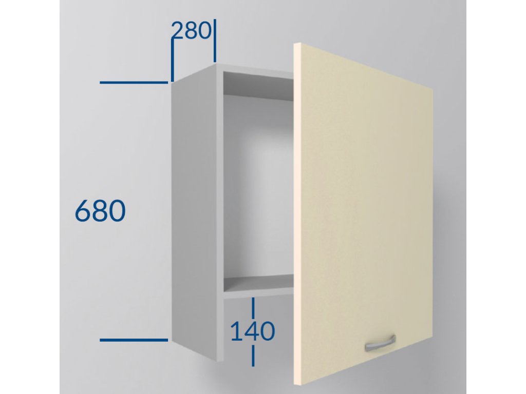 Horní vysoká skříňka nad digestoř, šířka 60 cm, 1 dvířka, MDF, pro vestavné digestoře řezaný grafit, bílý korpus. Náleží do kuchyňské sektorové řady Premiere. Skříňka nad digestoř vhodná pokud používáte horní skříňky výšky 92 cm. Stylový, ale cenově dostupný. To je kuchyňský sektor Premiere s dvířky z kvalitní MDF, potaženými odolnou PVC fólií pro větší odolnost vůči vlhkosti a poškrábání. Úchytka je na výběr, ostatní kování je v ceně. Na výběr je mnoho skříněk, ze kterých je možné si vytvořit vlastní sestavu podle potřeby. Horní skříňky mají v ceně očka pro zavěšení na zeď. Regulovatelné závěsy lze dokoupit z naší nabídky. Úchytky ke skříňce se objednávají zvlášť. Na výběr je více než 10 typů úchytek, takže lze vybrat dle vašeho vkusu. Dvířka jsou již předvrtána na rozteč 128 mm.Doplňkové parametry