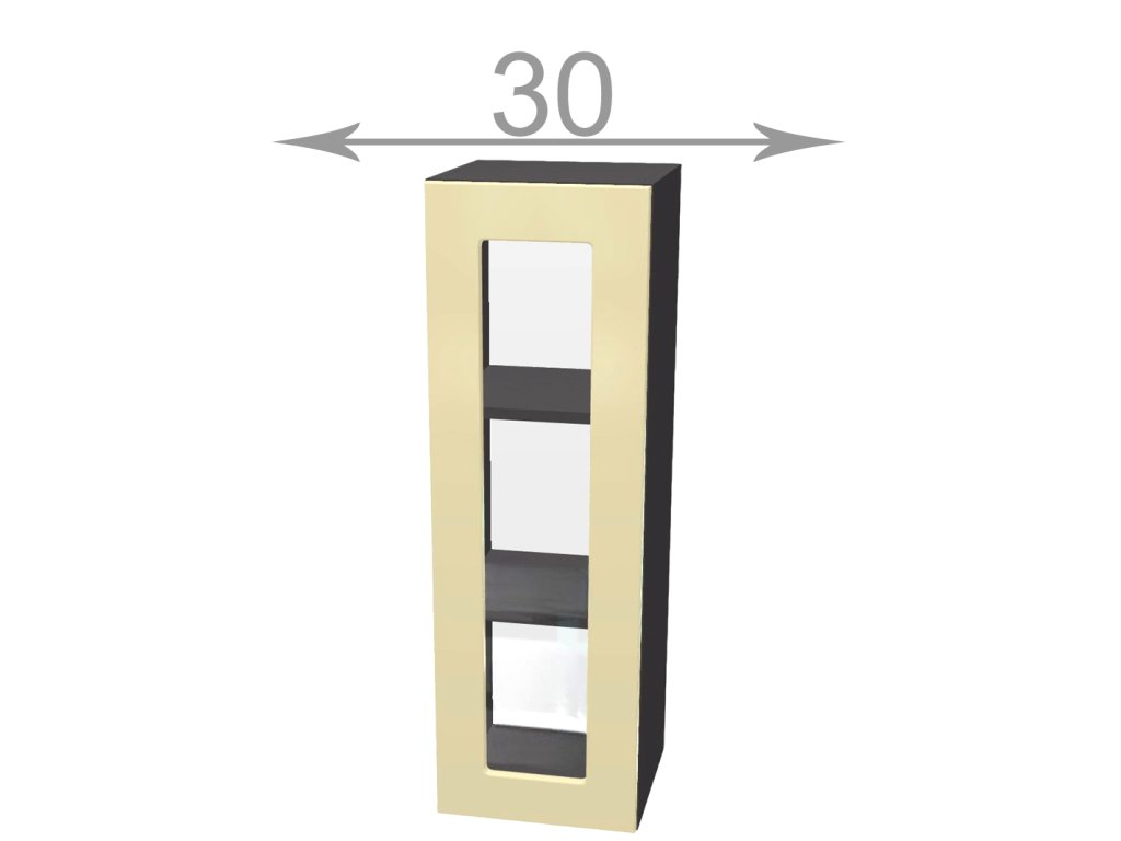 Horní vysoká vitrína, šířka 30 cm, 1 dvířka, MDF bílý lesk, bílý korpus. Náleží do kuchyňské sektorové řady Premiere. Skříňka o výšce 92 cm do vyšší zástavby horních skříněk. Stylový, ale cenově dostupný. To je kuchyňský sektor Premiere s dvířky z kvalitní MDF, potaženými odolnou PVC fólií pro větší odolnost vůči vlhkosti a poškrábání. Úchytka je na výběr, ostatní kování je v ceně. Na výběr je mnoho skříněk, ze kterých je možné si vytvořit vlastní sestavu podle potřeby. Horní skříňky mají v ceně očka pro zavěšení na zeď. Regulovatelné závěsy lze dokoupit z naší nabídky. Úchytky ke skříňce se objednávají zvlášť. Na výběr je více než 10 typů úchytek, takže lze vybrat dle vašeho vkusu. Dvířka jsou již předvrtána na rozteč 128 mm.Doplňkové parametry
