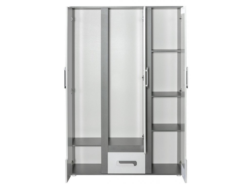 Třídveřová šatní skříň APETTITA ze sektorové řady, která se vyznačuje netradičním zpracováním barev a originalitou úchytů. Tento styl nábytku zaujme každou mladší generaci. Skříň je vyrobena z kvalitní LTD desky hraněné ABS lištou. Korpus je v barvě šedá antracit, dveře jsou bílé matné. Úchytky jsou v barevné kombinaci antracit/bílá . Uvnitř skříně je šatníková tyč a police, v dolní části je zásuvka. Sektorový nábytek APETTITA má široký výběr prvků, který Vám zaručí sestavit si dětský nebo studentský pokoj, ložnici či kancelář podle svých potřeb, přání a představ. Dodáváme v demontovaném stavu.Doplňkové parametry