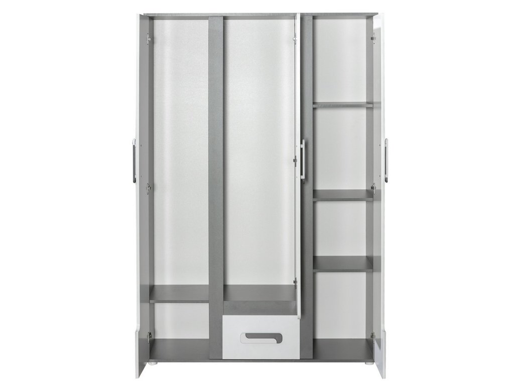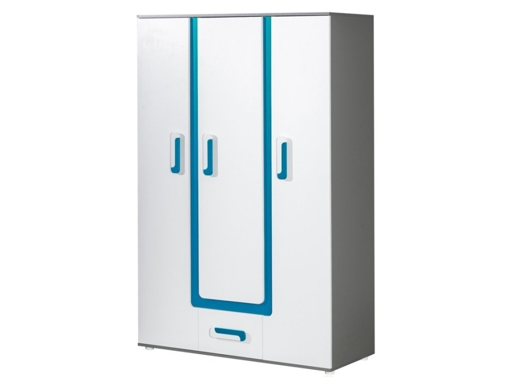 Třídveřová šatní skříň APETTITA ze sektorové řady, která se vyznačuje netradičním zpracováním barev a originalitou úchytů. Tento styl nábytku zaujme každou mladší generaci. Skříň je vyrobena z kvalitní LTD desky hraněné ABS lištou. Korpus je v barvě šedá antracit, dveře jsou bílé matné, doplňková barva je tyrkys. Úchytky jsou v barevné kombinaci tyrkys/bílá. Uvnitř skříně je šatníková tyč a police, v dolní části je zásuvka. Sektorový nábytek APETTITA má široký výběr prvků, který Vám zaručí sestavit si dětský nebo studentský pokoj, ložnici či kancelář podle svých potřeb, přání a představ. Dodáváme v demontovaném stavu.Doplňkové parametry