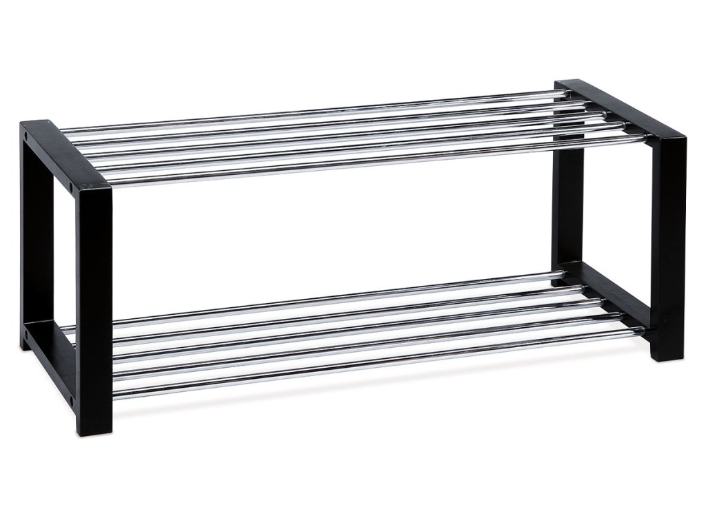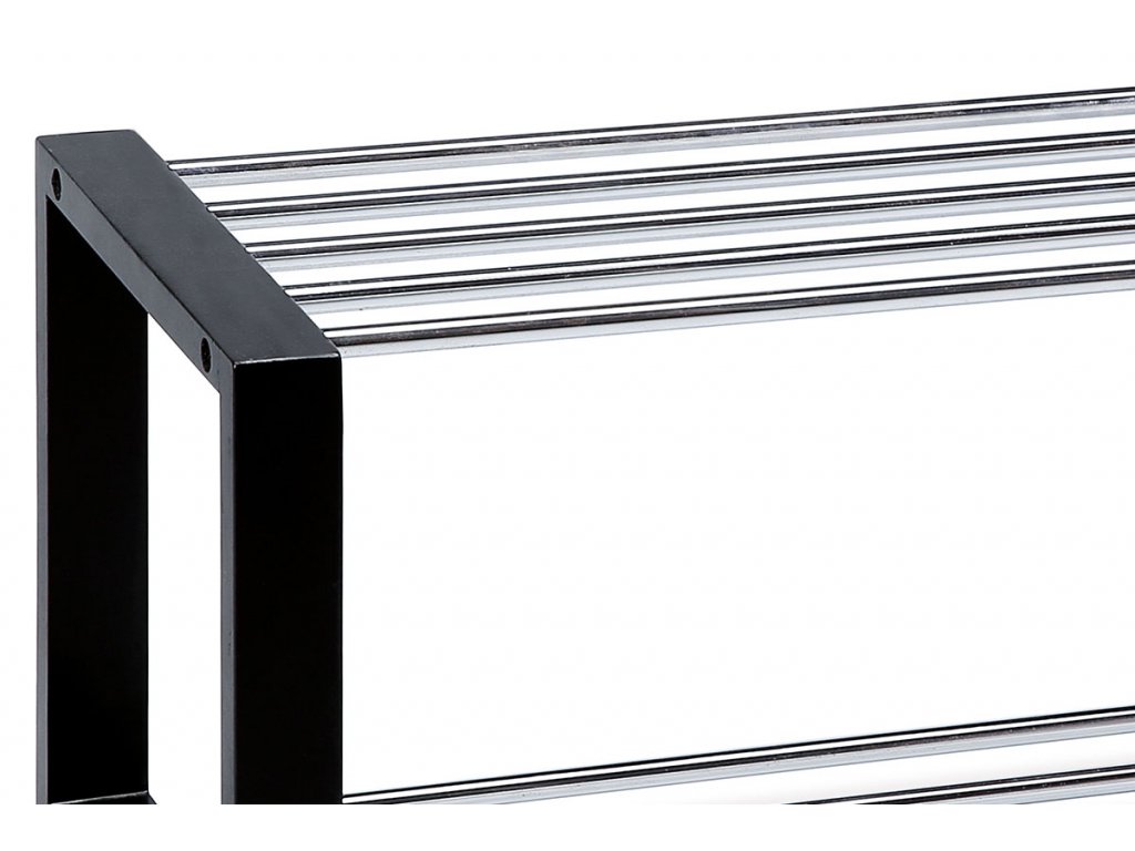 Botník, 2 kovové chromované police, masiv kaučukovník, černý matný lak