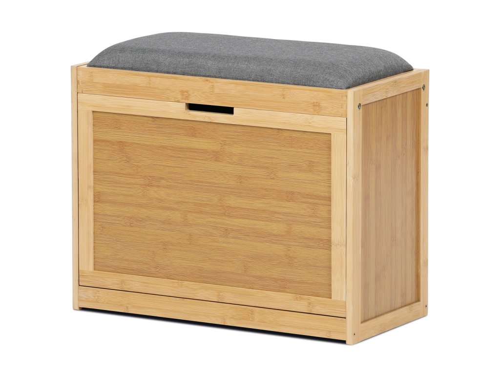 Botník DR-N1014 GREY2 značky Autronic kombinuje přírodní estetiku masivního bambusu s praktickým úložným prostorem a komfortním sedákem potaženým šedou látkou. Konstrukce je vyrobena z pevného a odolného bambusového masivu, který díky své přirozené struktuře a světlému odstínu dodává interiéru svěží a ekologický vzhled. Horní část botníku je opatřena měkkým polstrováním z kvalitní šedé textilie, která zajišťuje pohodlné sezení při obouvání. Úložný prostor je přístupný pomocí výklopného víka s praktickým výřezem pro snadné otevírání, což umožňuje efektivní uskladnění obuvi nebo dalších drobných předmětů. Stabilní rámová konstrukce z bambusu garantuje dlouhou životnost a pevnost, zatímco kompaktní rozměry botníku umožňují jeho umístění v předsíních i menších prostorách. Díky kombinaci přírodních materiálů a funkčních vlastností představuje tento botník ideální řešení pro organizaci domácnosti s důrazem na design i praktičnost.Doplňkové parametry