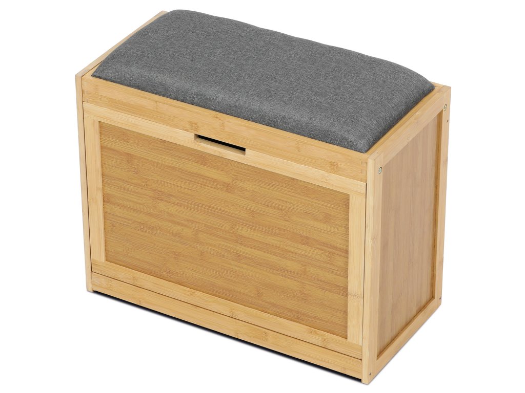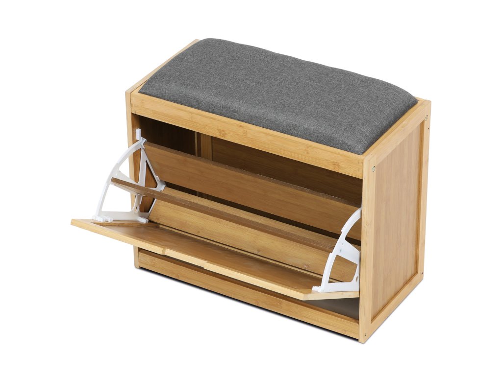 Botník, masiv bambus, přírodní odstín, šedá látka