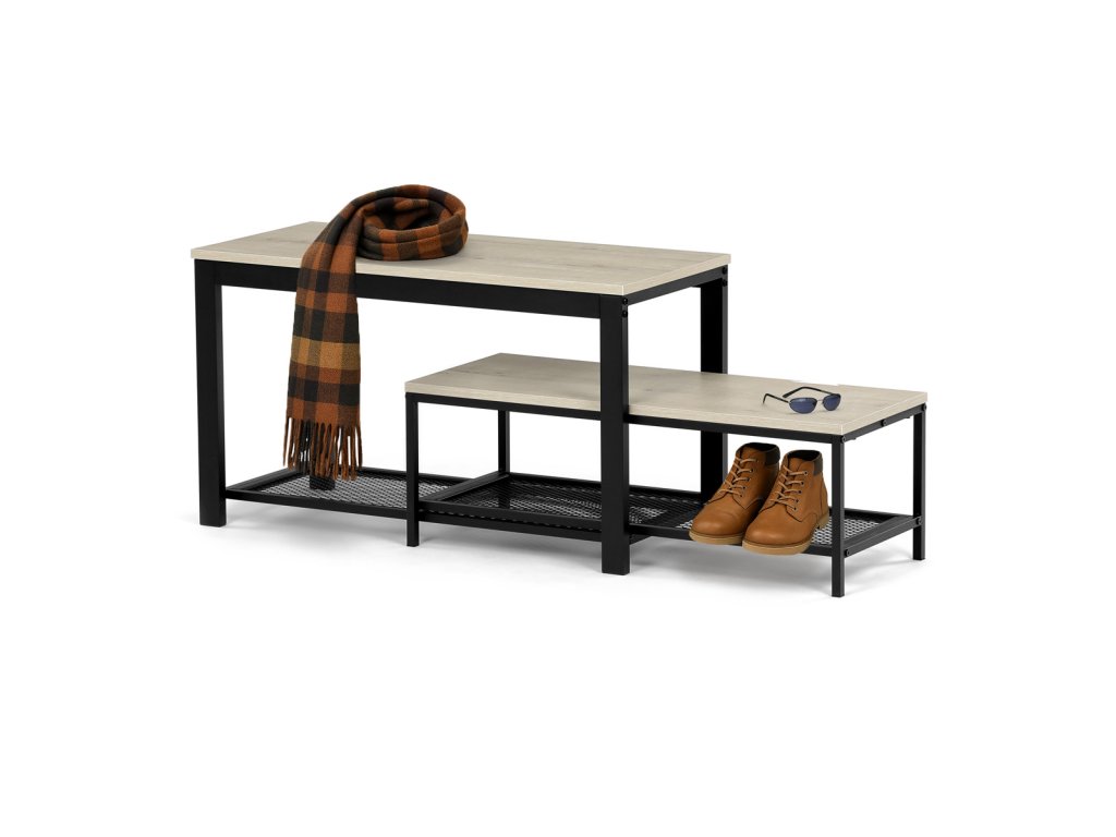 Botník 2 police, MDF dekor dub sonoma, kov - černý matný lak