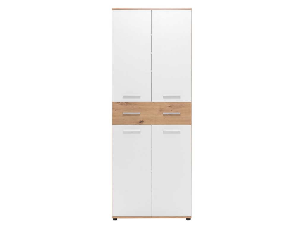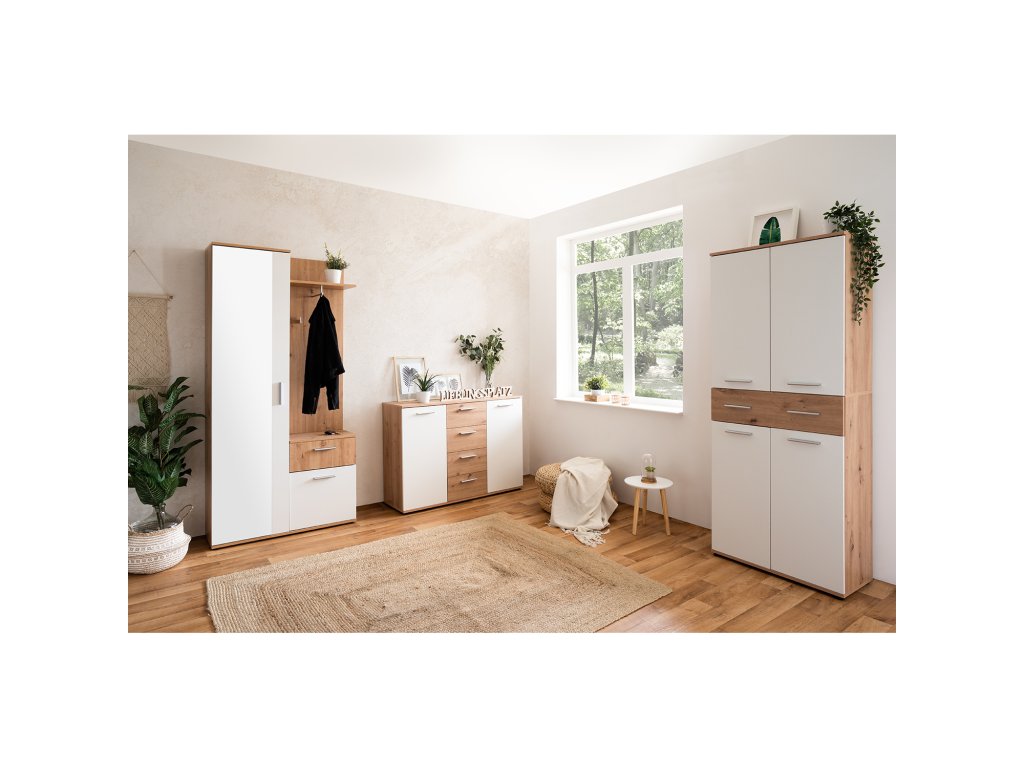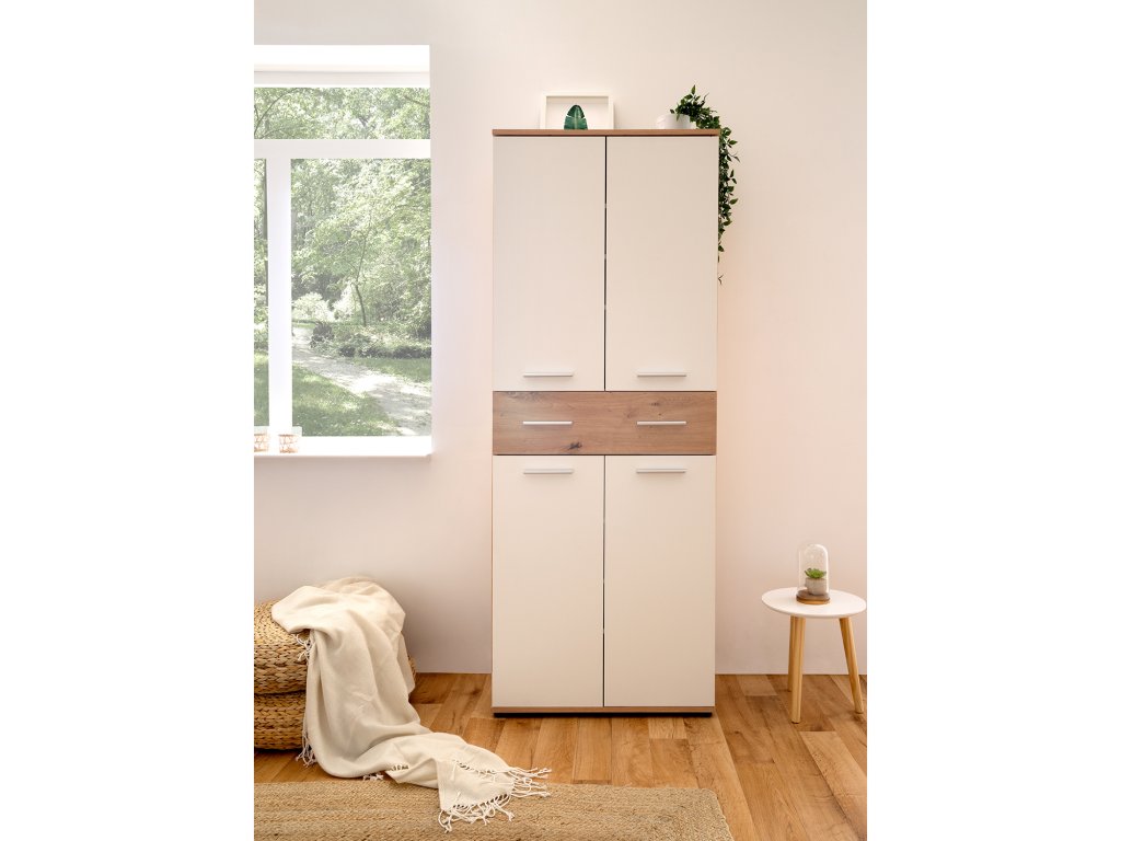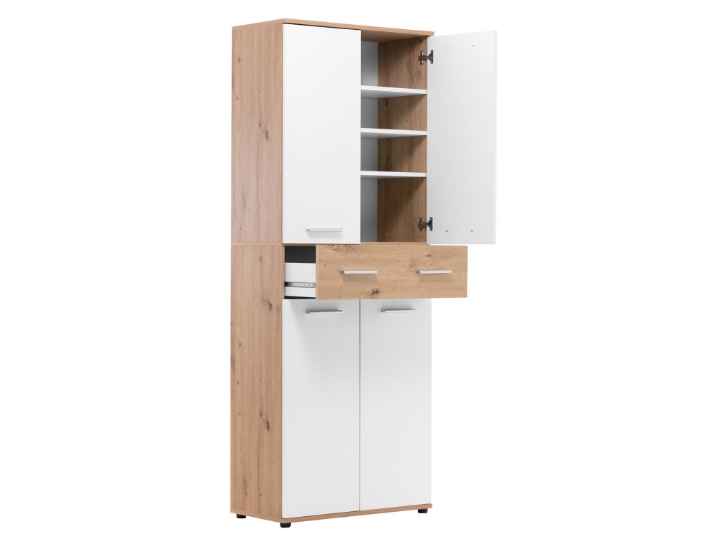 barevné provedení bílá / zlatý dub v horní části 3 variabilní police, v dolní části 3 variabilní police ve střední části zásuvka rozměry některých prvků jsou uvedeny v návodu k montážiDoplňkové parametry