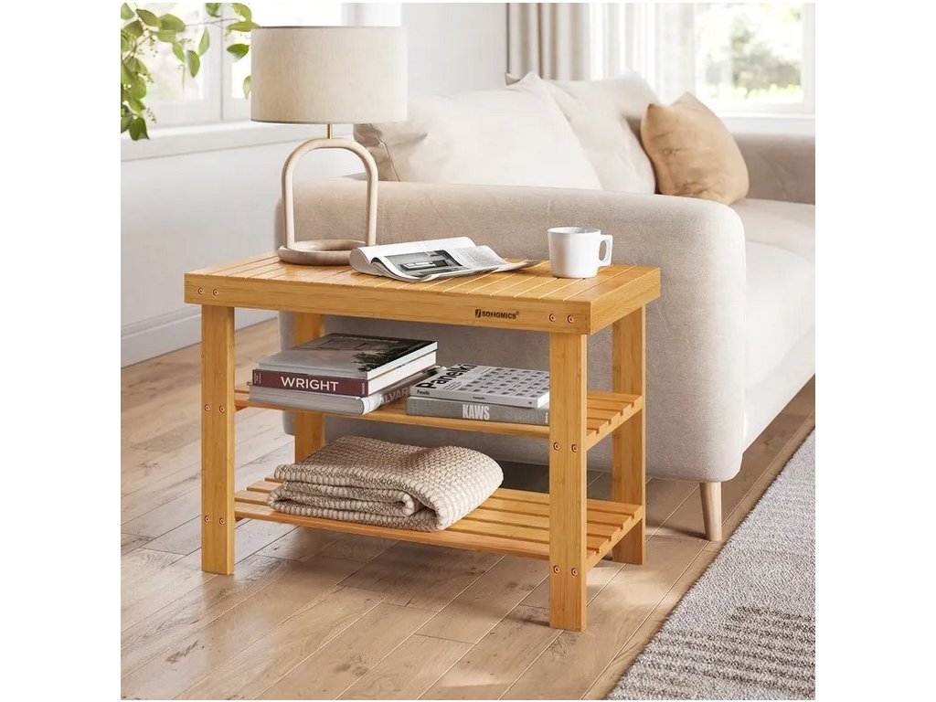Botník se dvěma policemi je vyroben z přírodního bambusu. Má víceúčelové použití. Dodáváme v demontovaném stavu.Doplňkové parametry