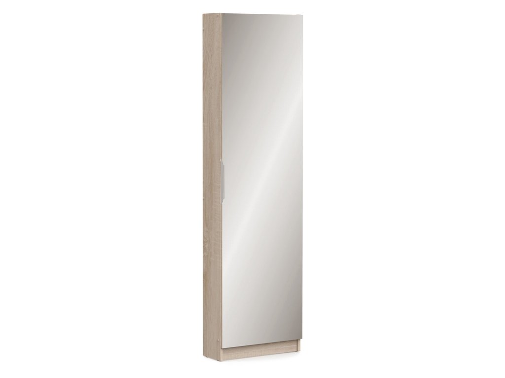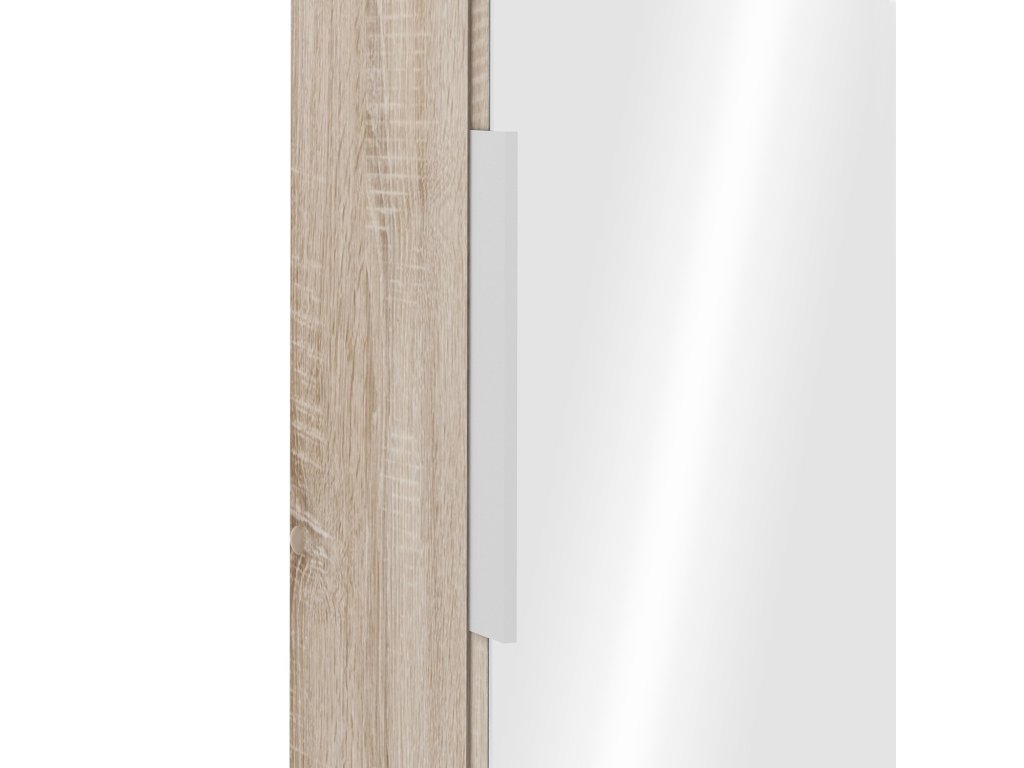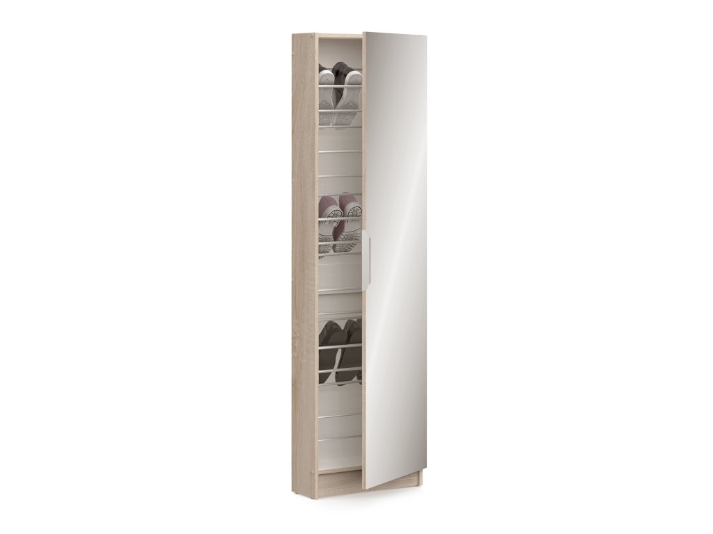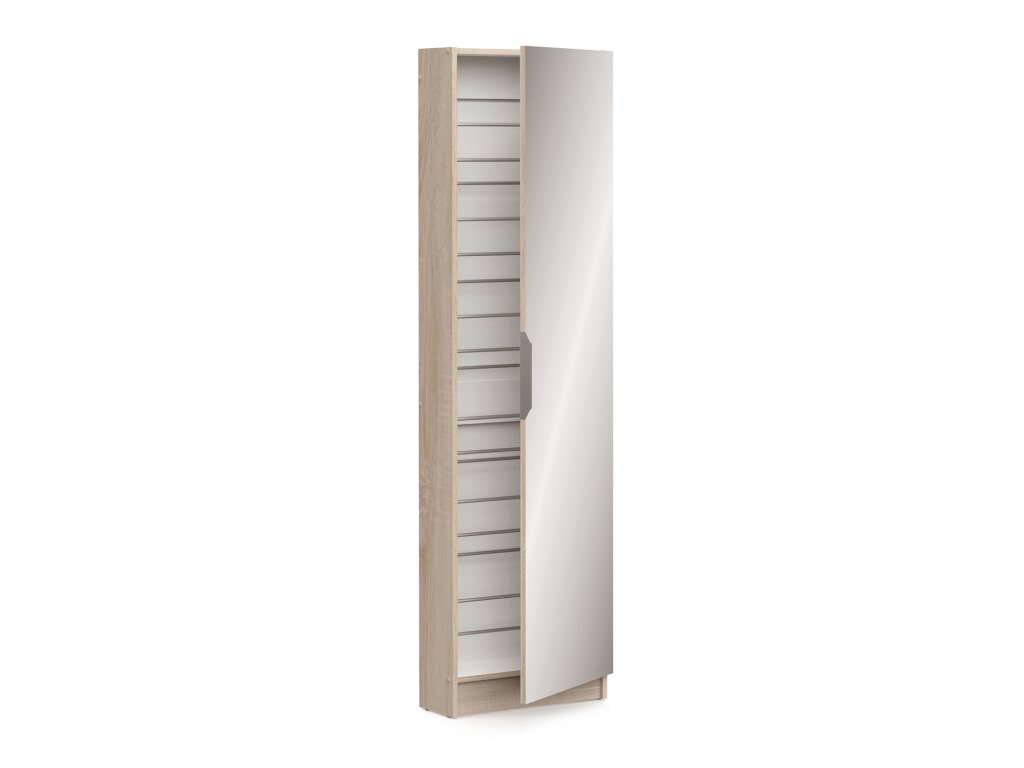 barevné provedení dub Sonoma na dveřích zrcadlo 50 × 173 cm, kovová úchytka montáž možná na levou i pravou stranu 6 úrovní pro 12 párů botDoplňkové parametry