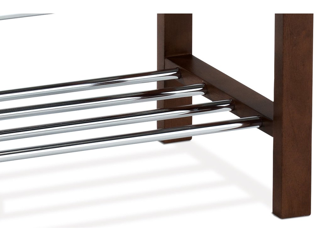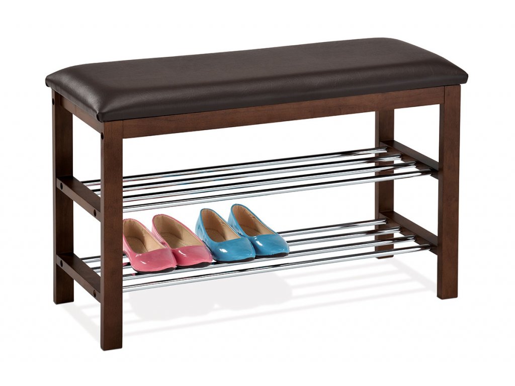Botník s taburetem v hnědém odstínu je vyroben z masivu kaučukovníku s mořením na ořech, což zajišťuje pevné a stabilní tělo. Sedák je potažen kvalitní hnědou ekokůží, která se snadno udržuje a přispívá k pohodlnému sezení. Dvě chromované police nabízejí praktický prostor pro uložení obuvi, přičemž jejich lesklý povrch kontrastuje s teplým dřevem rámu. Kompaktní rozměry a pevné provedení umožňují využití v předsíních i menších prostorách. Celková kombinace materiálů a designu vytváří funkční a estetický doplněk interiéru.Doplňkové parametry