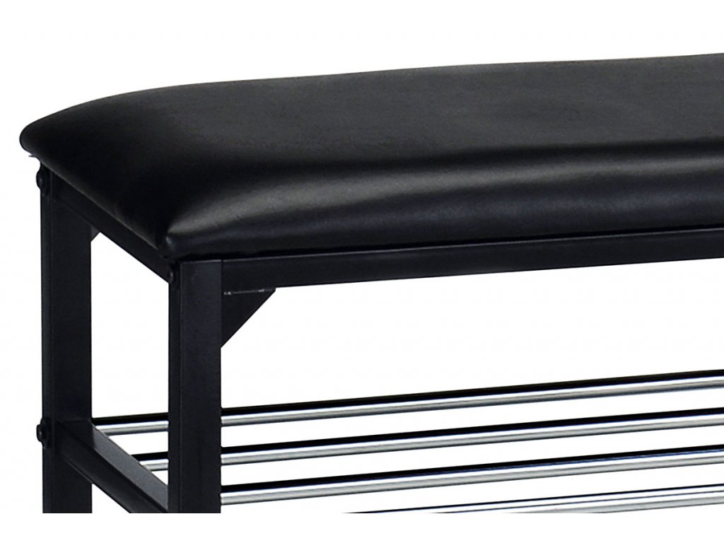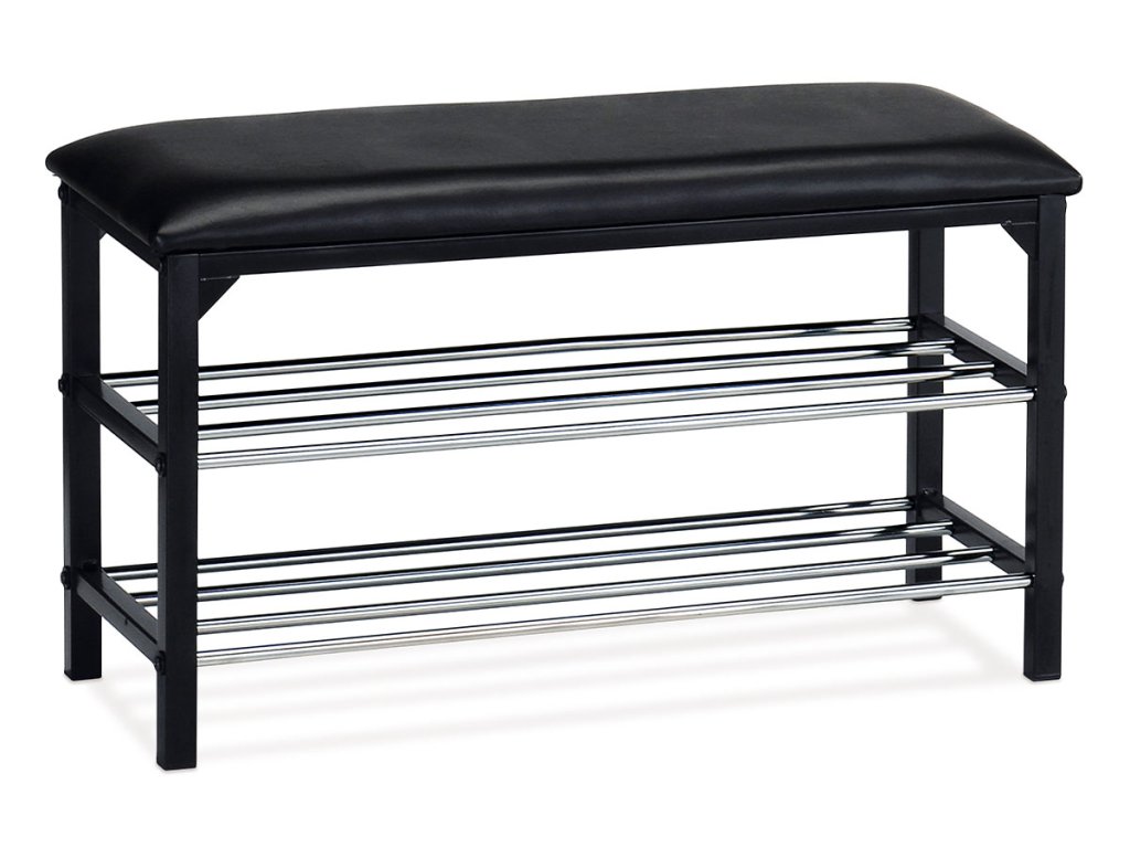 Praktický kovový botník / taburet se 2 odkládacími policemi. Provedení černý práškový lak v kombinaci s černou koženkou.
