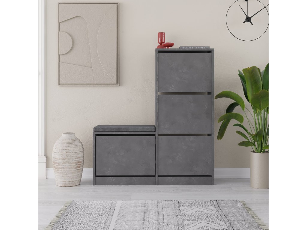 Naše skříňka na boty není jen úložným řešením; je to výrazný kus, který vylepší estetiku každé místnosti. Díky svému elegantnímu a modernímu designu dodá vašemu domovu nádech sofistikovanosti. Šedá barva skříňky doplní jakýkoli styl interiéru, takže je všestrannou volbou pro jakýkoli prostor.