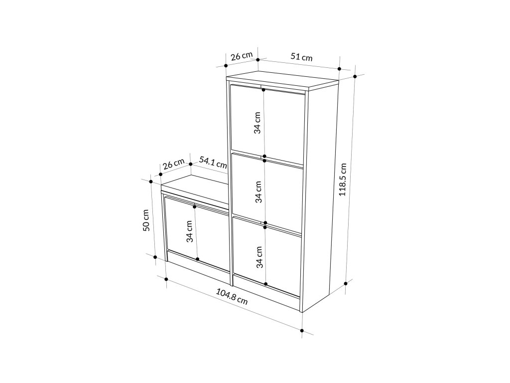 Rozlučte se s přeplněnými podlahami a přivítejte uklizený obytný prostor! Naše skříňka na boty má několik polic, které pojmou širokou škálu velikostí a stylů bot. Od tenisek po podpatky, od bot po sandály, tato skříňka má dostatek prostoru pro uložení všech. Už žádné hledání odpovídajícího páru bot ani spěchající zakopávání o boty!