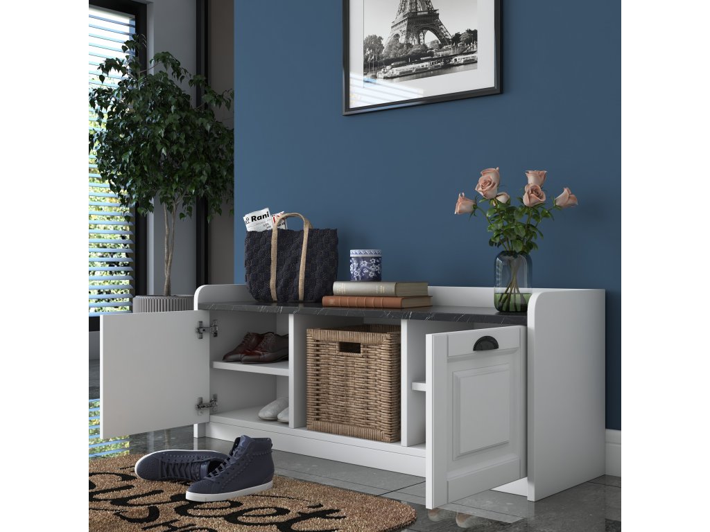 - 2 plná dvířka pro diskrétní uložení obuvi.