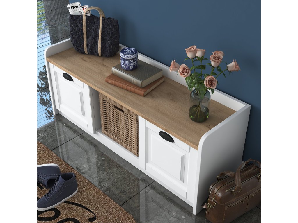 Botník je ideálním řešením pro udržení pořádku ve vaší předsíni. Kombinuje funkčnost a moderní design v atraktivní kombinaci bílé barvy a dekoru ořechu. Díky svému elegantnímu vzhledu a praktickému provedení je skvělým doplňkem každé domácnosti.