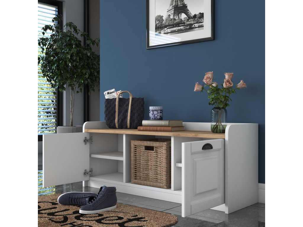 Botník je navržen tak, aby pomohl vytvořit organizovanou a stylovou předsíň. Jeho plná dvířka skryjí obuv i další předměty a zanechají prostor uklizený a přehledný.
