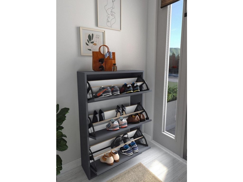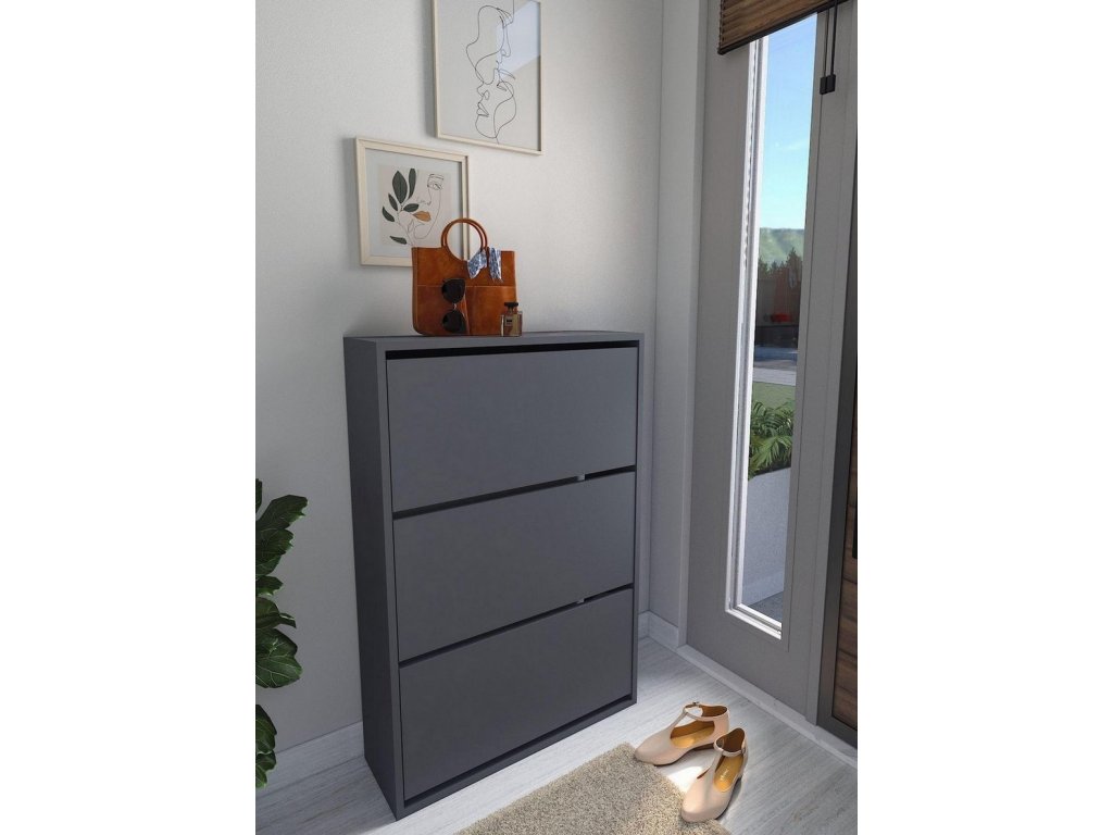 Botník s výklopnými dvířky je vyroben z kvalitní desky LTD nenáročné na údržbu, v barevném provedení antracit. Tloušťka materiálu - 18 mm. Dodáváme v demontovaném stavu.Doplňkové parametry