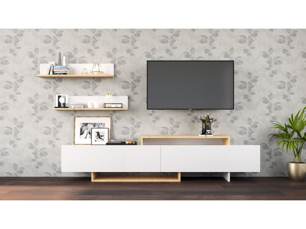 Obývací stěna vás zaujme svým elegantním designem. Kombinace barevného provedení dub Artisan/bílá dodá vašemu interiéru hřejivý pocit domova. Design je jednoduchý, ale zároveň moderní, což jej činí ideálním pro současné obývací prostory.