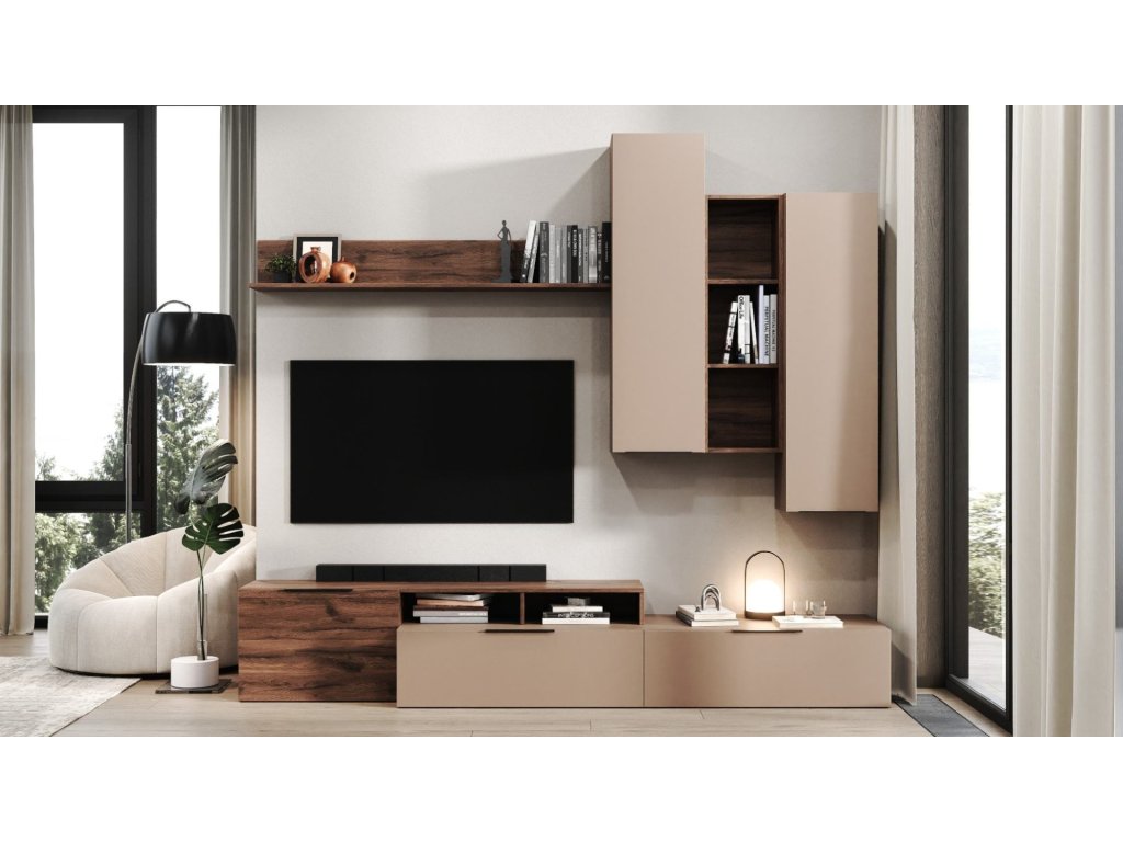 Obývací stěna vás zaujme svým elegantním designem. Kombinace barevného provedení dub Livorno/toffy dodá vašemu interiéru hřejivý pocit domova. Design je jednoduchý, ale zároveň moderní, což jej činí ideálním pro současné obývací prostory.