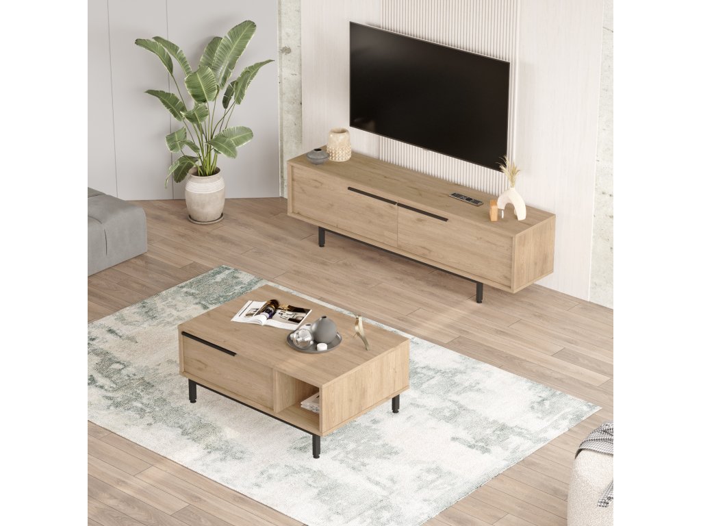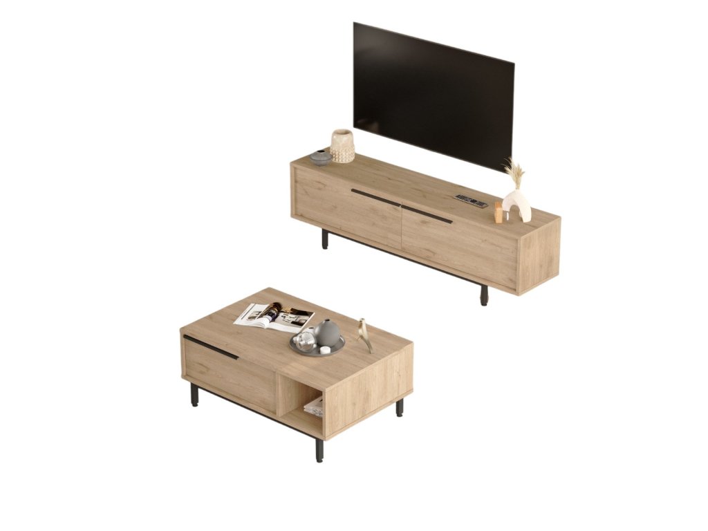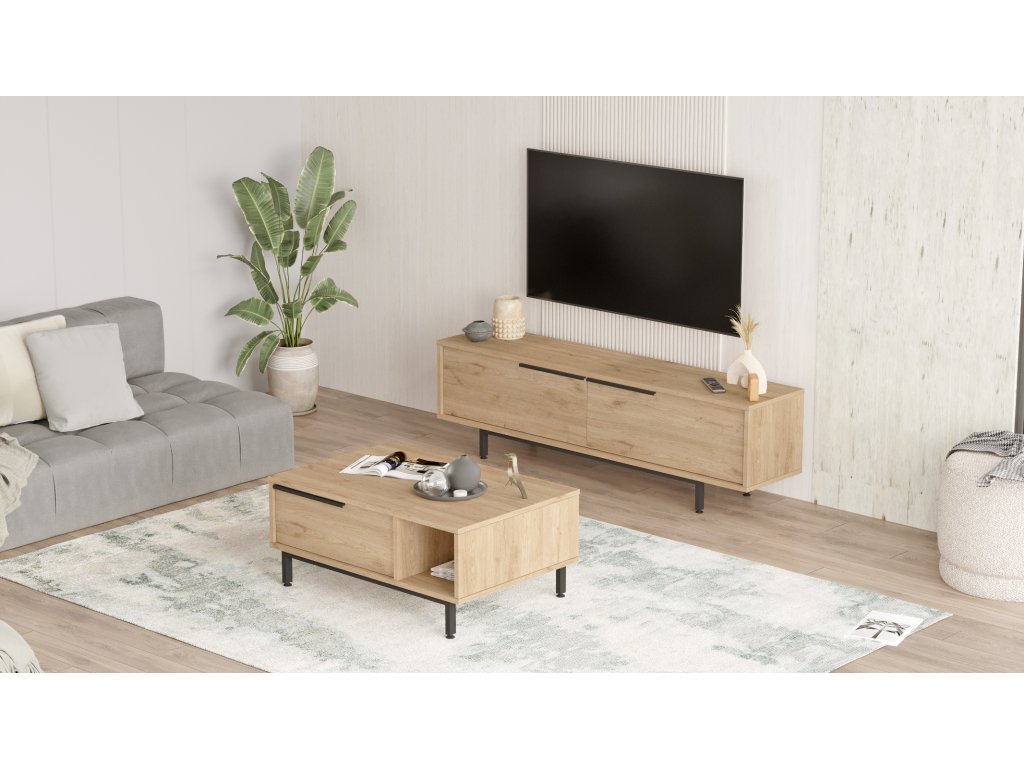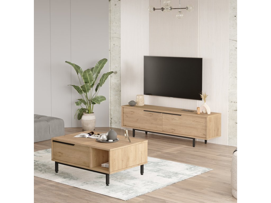 nabízí dokonalou kombinaci praktičnosti a stylu. Televizní stolek poskytuje dostatek prostoru pro elektroniku a multimediální zařízení, zatímco konferenční stolek je ideálním místem pro odkládání knih, občerstvení nebo dekorací. Elegantní design a precizní zpracování zajišťují, že tato sestava se stane středobodem vašeho obývacího pokoje.