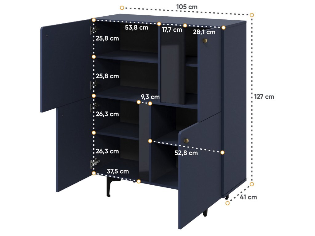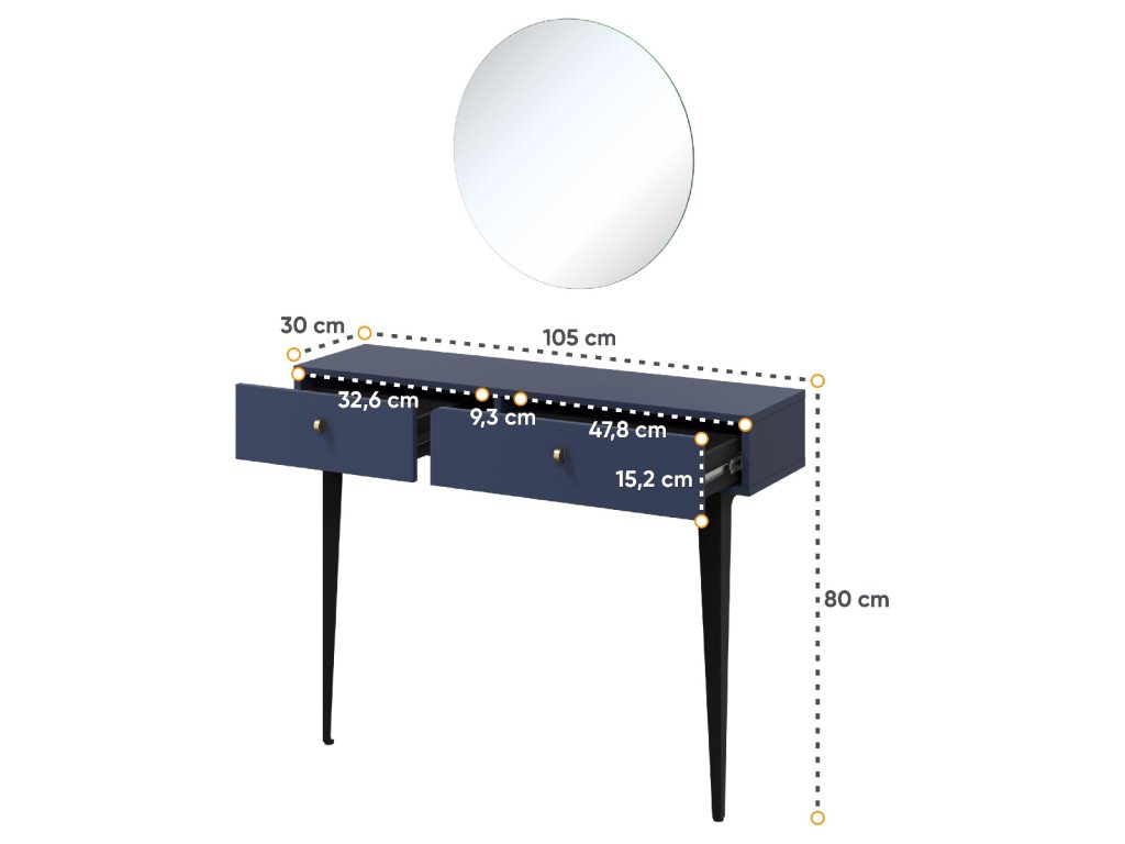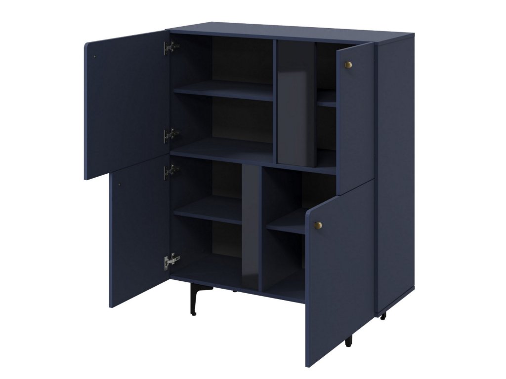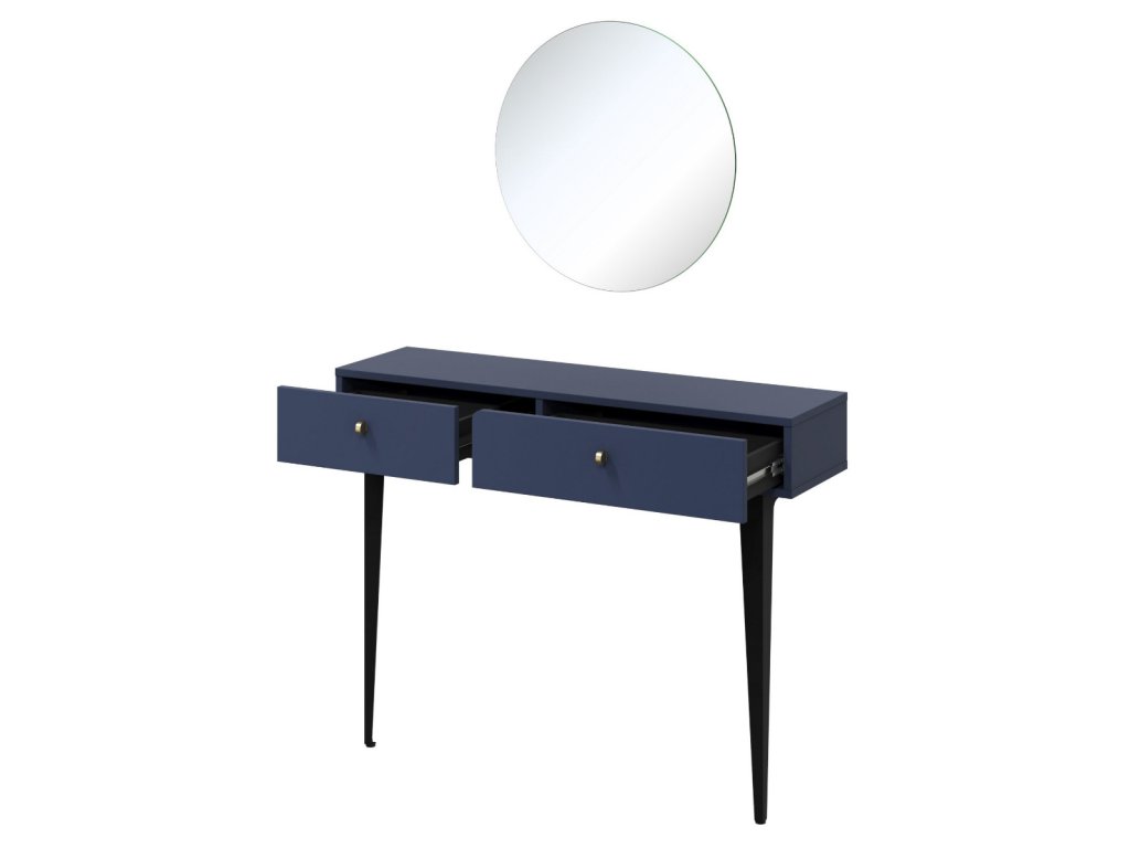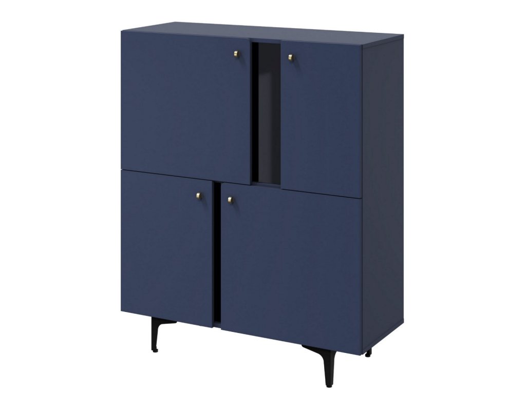 Kolekce nábytku do obývacího pokoje. Sestava se skládá ze 2 komod a konzlového stolku. Stolek neobsahuje zrcadlo v ceně, doporučujeme dokoupit. Dvířka a zásuvky mají soft close - systém tichého dovírání. Kolekce moderniho nábytku je určena pro ty, kteří milují barevné prostory, ale také pro ty, kteří dávají přednost vnesení barvy do interiéru pomocí jednoho výrazného prvku. Není žádným tajemstvím, že barva v interiéru hraje obrovskou, téměř klíčovou roli. Její výběr ovlivňuje nejen celkový vzhled místnosti, ale především naši náladu. Rozměry viz obrázky. Barevné provedení - tmavě modrá granát, úchyty jsou tvarované zlaté. Dodáváme v demontovaném stavu.