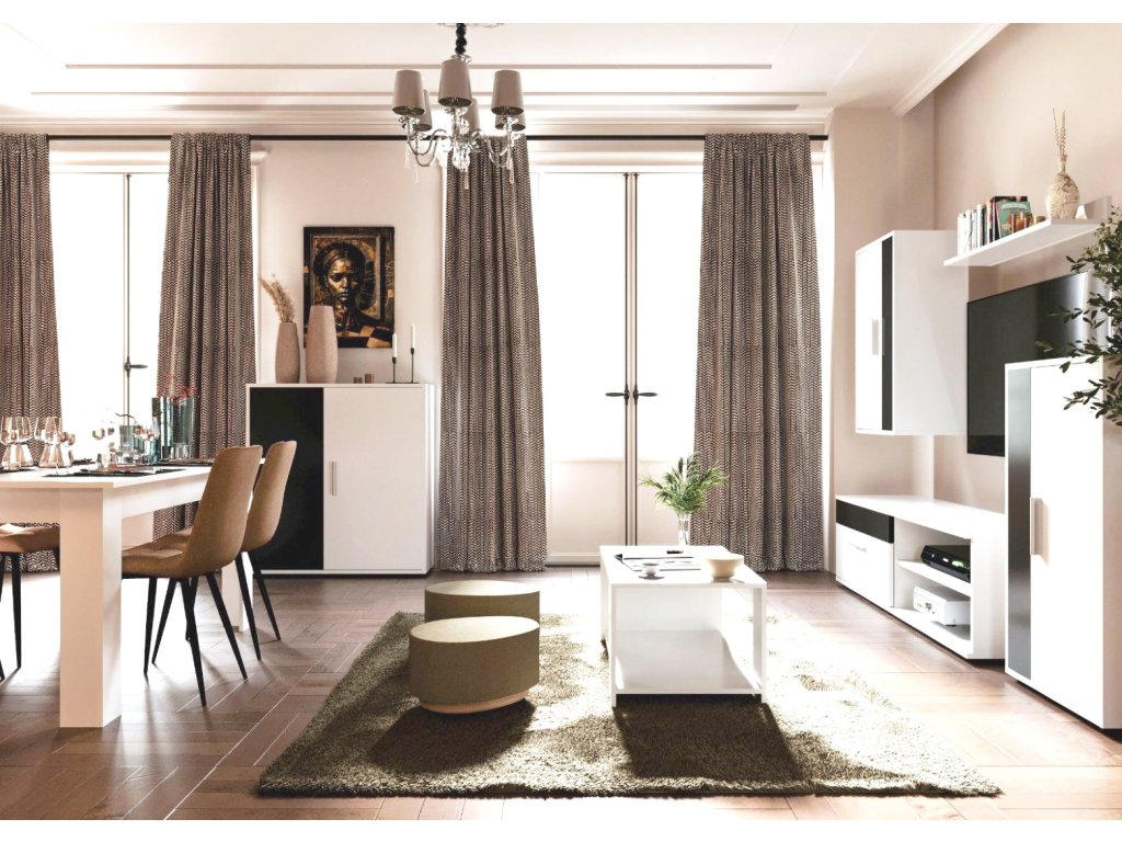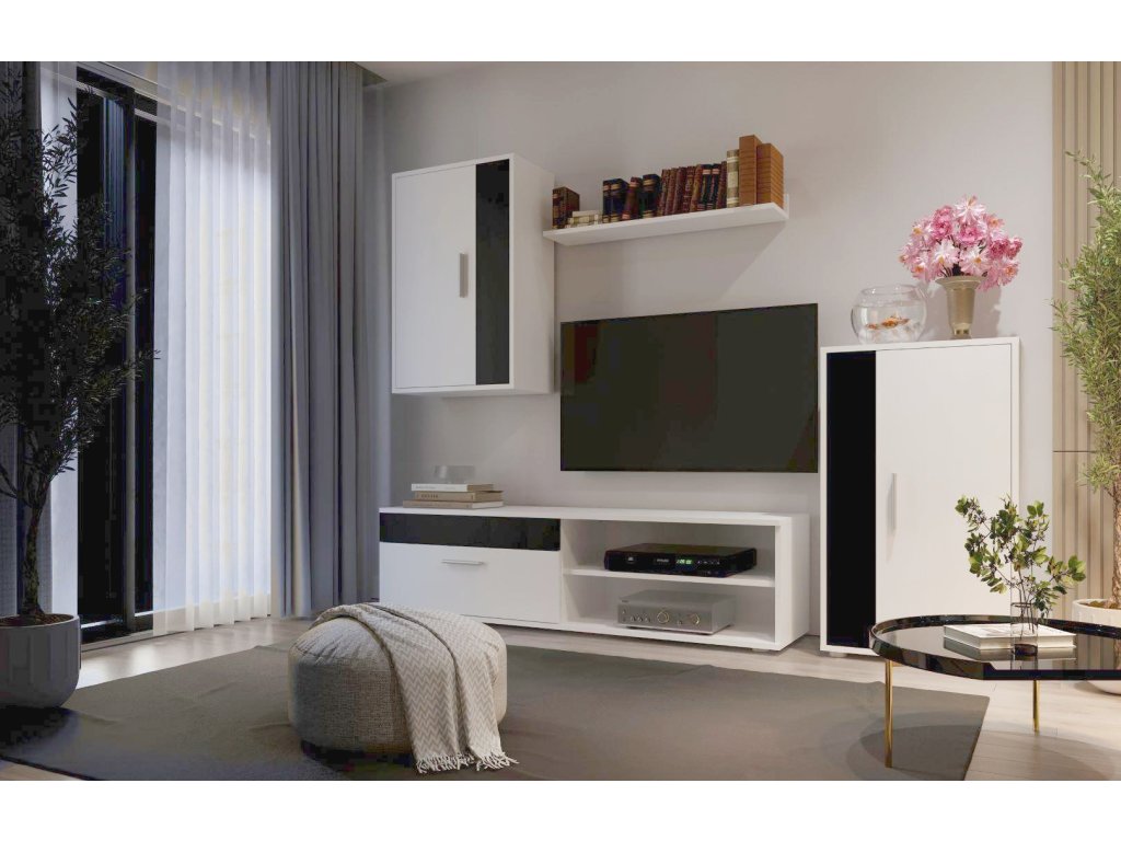 Představujeme obývací stěnu – dokonalou kombinaci funkčnosti a minimalistického designu. Navržena tak, aby povýšila váš obytný prostor svou elegantní estetikou a praktickými úložnými řešeními. Specifikace: Barevné provedení: bílá/černá. Perfektní pro současné interiéry, nabízející čistý a uklizený vzhled. Dostatečný úložný prostor. Odolná konstrukce je vyrobena z kvalitních LTD 16 a 22 mm. Jednoduchá montáž. Dodáváme v demontovaném stavu.