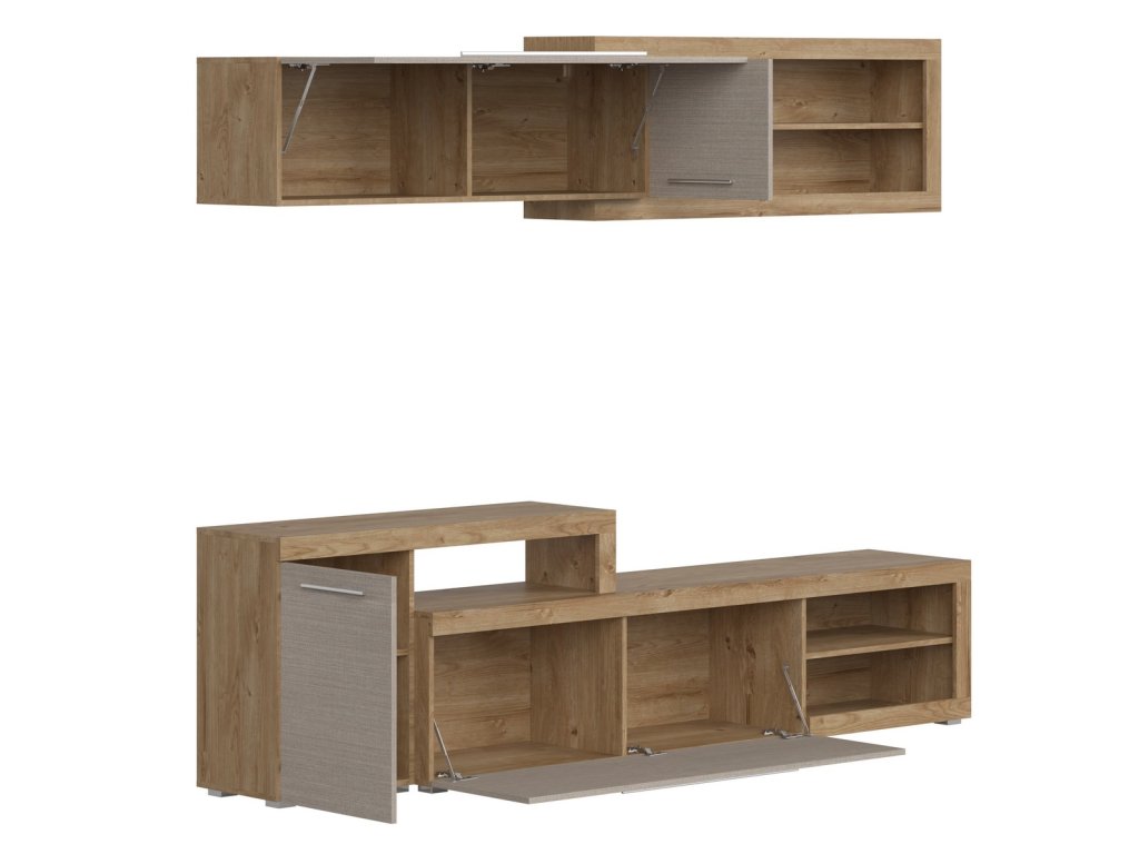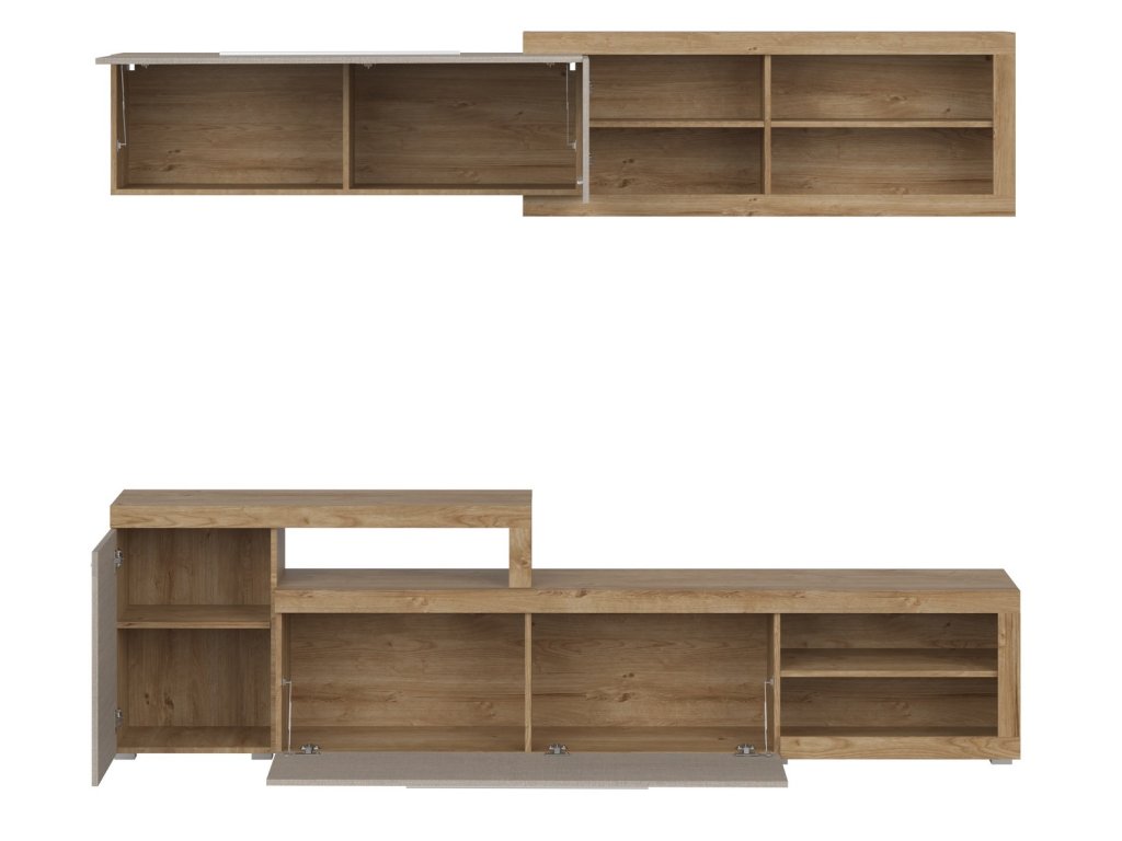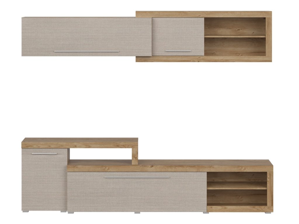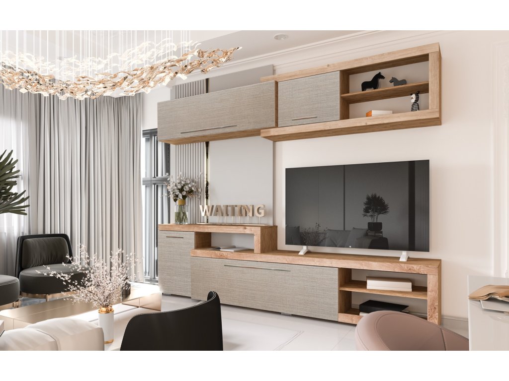 Obývací stěna je navržena s důrazem na moderní design a funkčnost. Vyniká svým elegantním barevným provedením v odstínech gotland a greige tessea, které dodávají vašemu interiéru sofistikovaný vzhled. Masivní boční stěny a kvalitní LTD zaručují pevnost a odolnost celé konstrukce. Kombinace dvířek a otevřených polic poskytuje dostatek místa pro uložení a vystavení vašich věcí. Rozměry viz perokresba. Dodáváme v demontovaném stavu.Doplňkové parametry