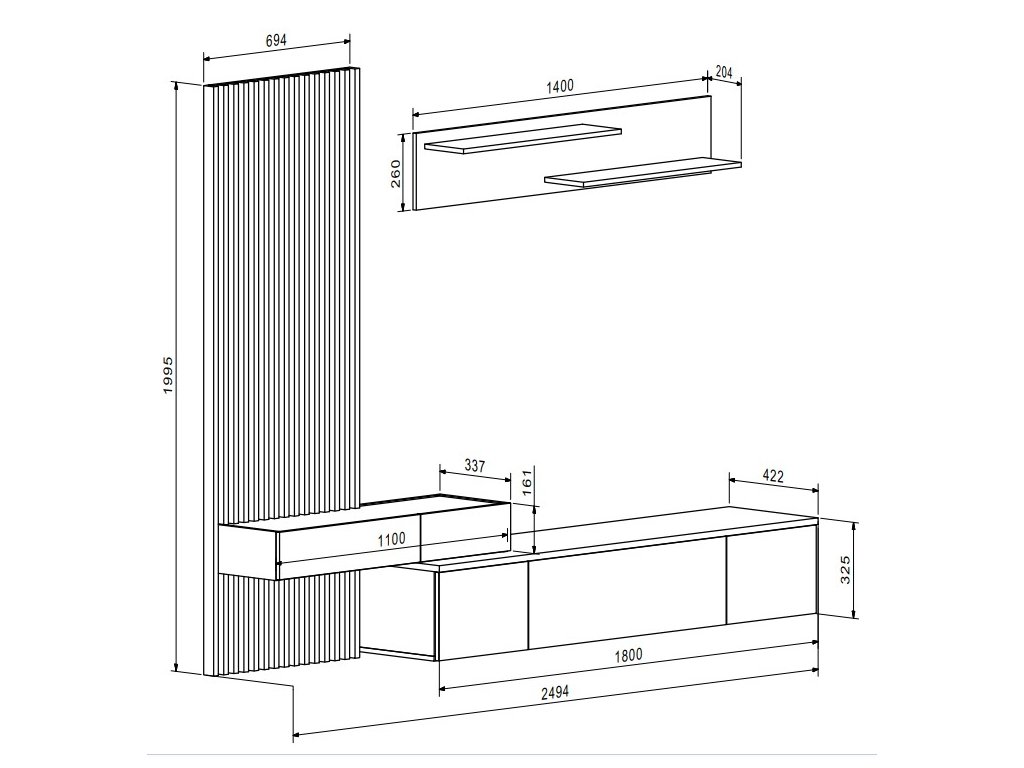 Obývací stěna se bude hodit zejména do obývacího pokoje zařízeného do moderního či skandinávského stylu. Prezentovaná nábytková sestava je kombinací estetického designu a funkčnosti. Stylový lamelový panel bude ozdobou každého interiéru a skvěle doplňuje stěnu s TV stolkem a policí. LTD o tloušťce 16 mm a 22 mm, zadní část nábytku je vyrobena z dřevovláknité desky o tloušťce 3 mm, panty Hettich, HAFELE celovýsuvná kuličková vedení, plastové nohy, bezúchytový systém "PUSH TO OPEN". Barevné provedení - bílá mat/dub Artisan. Dodáváme v demontovaném stavu.Doplňkové parametry