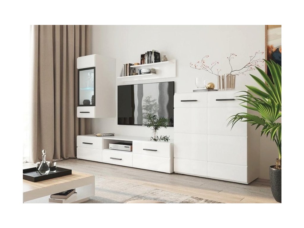 Představujeme Vám obývací sestavu – ideální řešení pro moderní obývací pokoje, které kombinuje stylový design a praktické funkce. Elegantní bílé provedení s lesklými dvířky a matným korpusem dodá vašemu interiéru sofistikovaný vzhled. Integrované LED osvětlení v ceně nejen zvýrazní vaše dekorace, ale také vytvoří příjemnou atmosféru. Skládá se: televizní stolek, závěsná police, závěsná vitrína a 2-dveřová komoda. Dodáváme v demontovaném stavu.Doplňkové parametry