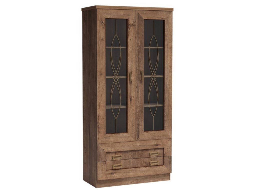Obývací sestava. Systém je exkluzivní kolekce navržena v duchu vintage. Nábytek je vyroben z velmi kvalitní LTD o tloušťce 16 mm, horní deska zesílena na 32 mm, lišty na čele nábytku jsou MDF, hrany ABS. Tvrzené sklo ve vitrínách je jemně zdobené. Elegantní úchyty jsou z kovu. Barevné provedení je dub lefkas. Sestava se skládá ( šxhxv ) - široká vitrína ( 90 x 44 x 190 cm ), úzká vitrína ( 46 x 44 x 190 cm ), tv stolek ( 118 x 50 x 50 cm ) a závěsná police ( 118 x 35 x 38 cm ). V naší nabídce naleznete další sortiment z řady. Dodáváme v demontovaném stavu.Doplňkové parametry