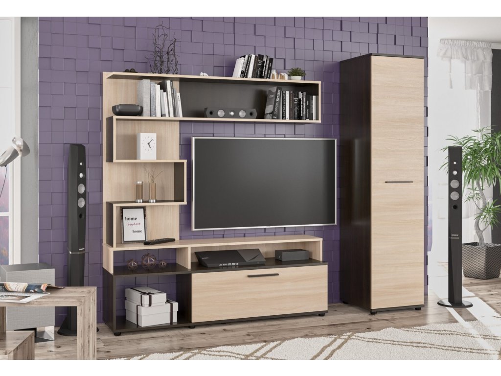 Televizní stěna MARANELO dub wenge tmavý/jasan světlý