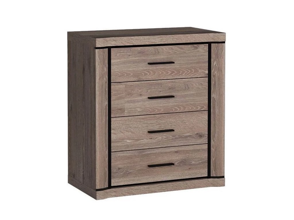 Komoda ze sektorové má čtyři zásuvky. Má zajímavé provedení v podobě netradičně vyřezávaných vrchních a spodních desek. Systém je exkluzivní kolekce navržena v moderním duchu. Celá řada se vyznačuje masivním vzhledem a jednoduchými tvary. Nábytek je vyroben z kvalitního LTD s lištami z MDF, součástí nábytku jsou desky 48 mm, vše opatřeno ABS páskou. Barevné provedení - dub lanýž. Má široký výběr komponentů, díky kterým lze vybavit nejen obývací pokoj, ale i jídelnu, kancelář nebo ložnici. Dodáváme v demontovaném stavu.Doplňkové parametry