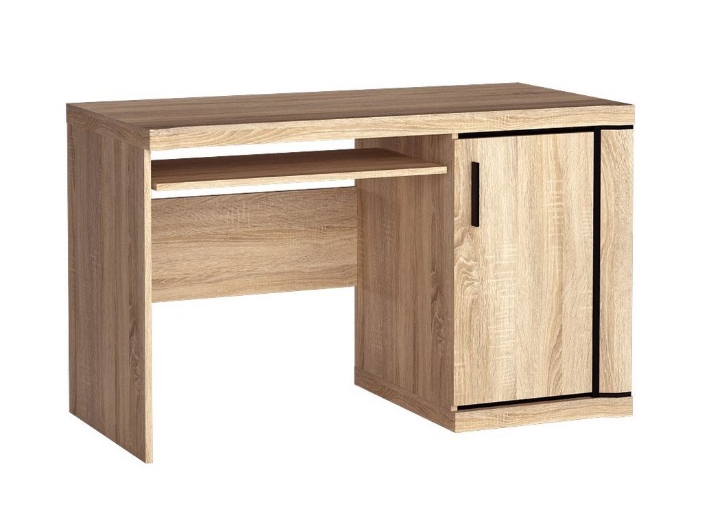 Pracovní stůl ze sektorové řady má pod pracovní deskou vysouvací poličku, po pravé straně jsou dvířka, za nimi jedna polička. Má zajímavé provedení v podobě netradičně vyřezávaných vrchních a spodních desek. Systém je exkluzivní kolekce navržena v moderním duchu. Celá řada se vyznačuje masivním vzhledem a jednoduchými tvary. Nábytek je vyroben z kvalitního LTD s lištami z MDF, součástí nábytku jsou desky 48 mm, vše opatřeno ABS páskou. Barevné provedení - dub sonoma. Má široký výběr komponentů, díky kterým lze vybavit dětský pokoj, kancelář. Dodáváme v demontovaném stavu.Doplňkové parametry