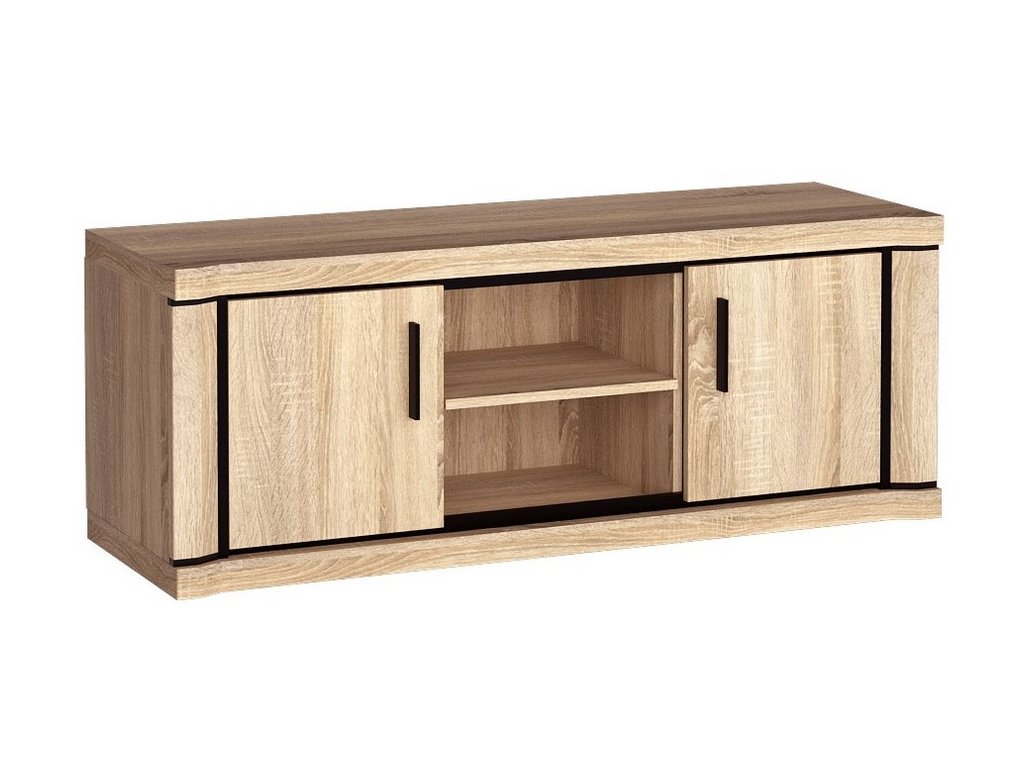 Televizní stolek ze sektorové řady má uprostřed poličku, po stranách jsou dvířka za nimi jedna polička. Má zajímavé provedení v podobě netradičně vyřezávaných vrchních a spodních desek. Systém je exkluzivní kolekce navržena v moderním duchu. Celá řada se vyznačuje masivním vzhledem a jednoduchými tvary. Nábytek je vyroben z kvalitního LTD s lištami z MDF, součástí nábytku jsou desky 48 mm, vše opatřeno ABS páskou. Barevné provedení - dub sonoma. Má široký výběr komponentů, díky kterým lze vybavit nejen obývací pokoj, ale i jídelnu nebo kancelář. Dodáváme v demontovaném stavu.Doplňkové parametry