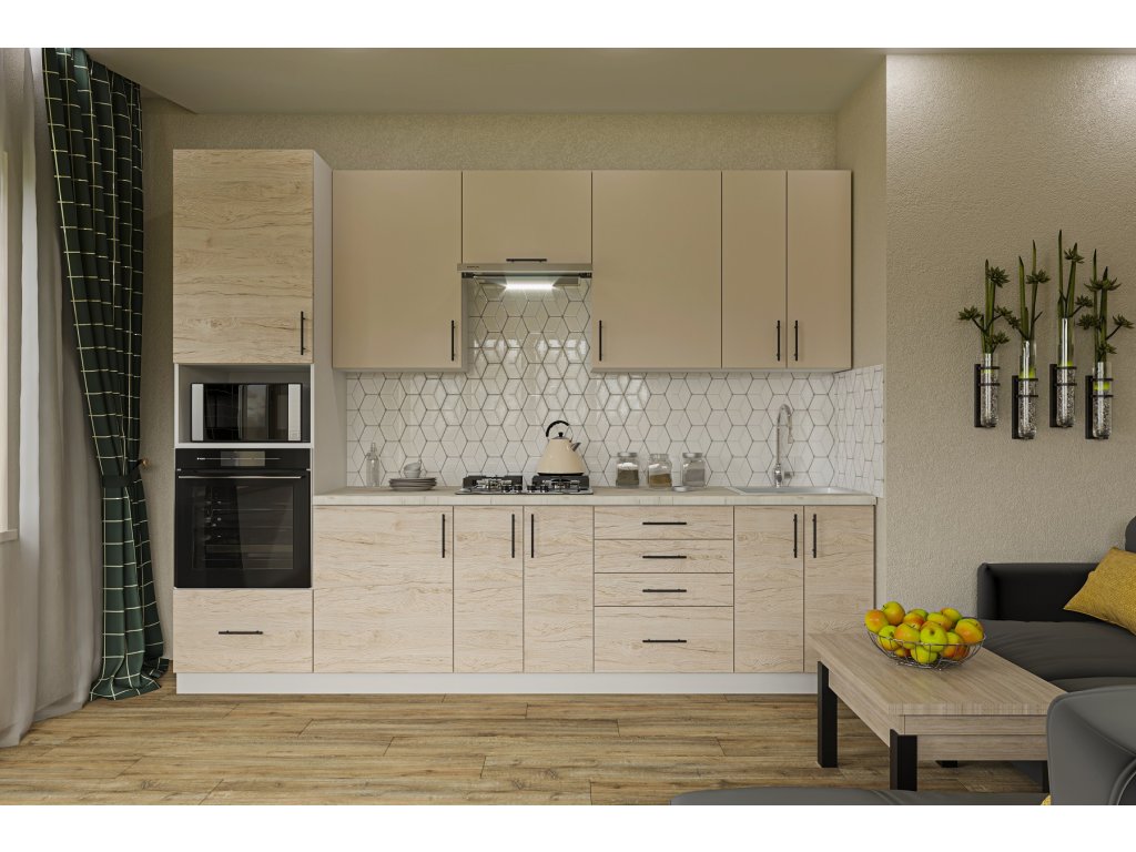Kuchyňská linka 280 HORLY 1 satin/light rockford hickory