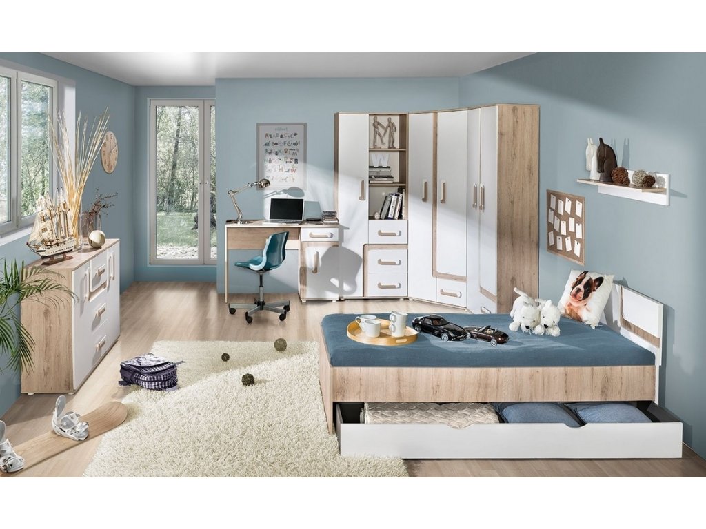 Postel APETTITA ze sektorové řady, která se vyznačuje netradičním zpracováním barev a originalitou úchytů. Tento styl nábytku zaujme každou mladší generaci. Nábytek je vyroben z kvalitní LTD desky hraněné ABS lištou. Součástí postele je rošt, matraci je třeba dokoupit. Doporučený rozměr matrace je 90 x 200 cm. Korpus je v barvě dub jasný, dvířka a čela zásuvek jsou bílé matné. Výška spací plochy je 45 cm. Doporučujeme dokoupit praktickou zásuvku pod postel. Sektorový nábytek APETTITA má široký výběr prvků, který Vám zaručí sestavit si dětský nebo studentský pokoj, ložnici či kancelář podle svých potřeb, přání a představ. Dodáváme v demontovaném stavu.Zusätzliche Parameter